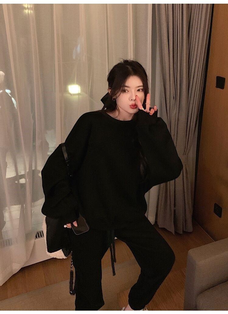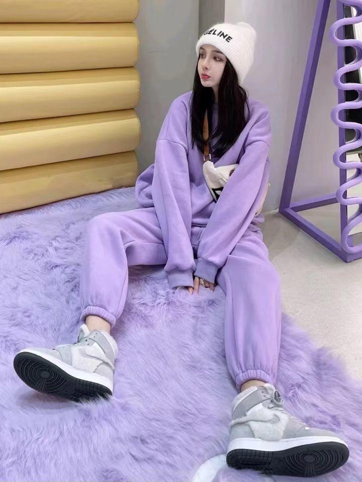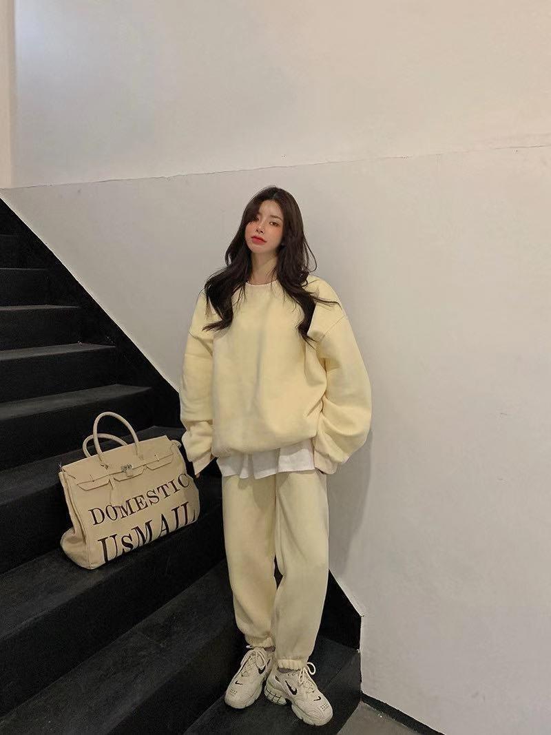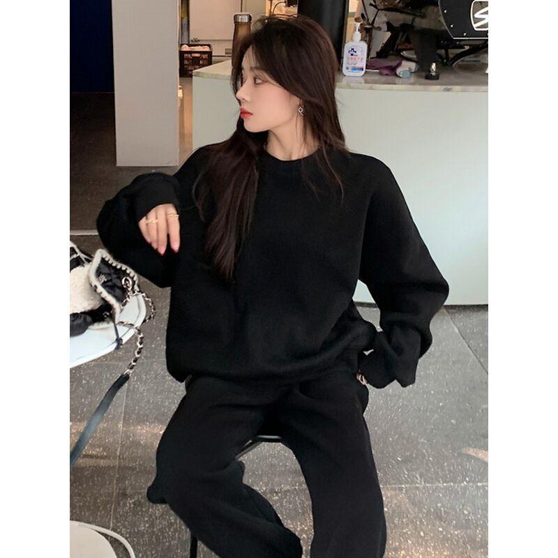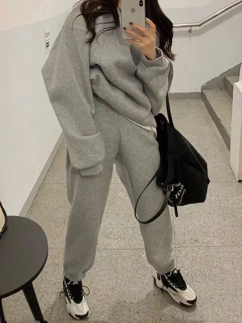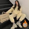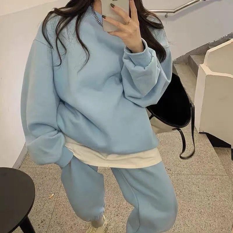 2023 traje deportivo de moda casual engrosado con forro polar para mujer otoño e invierno nuevo suéter suelto estilo occidental pantalones conjunto de dos piezas