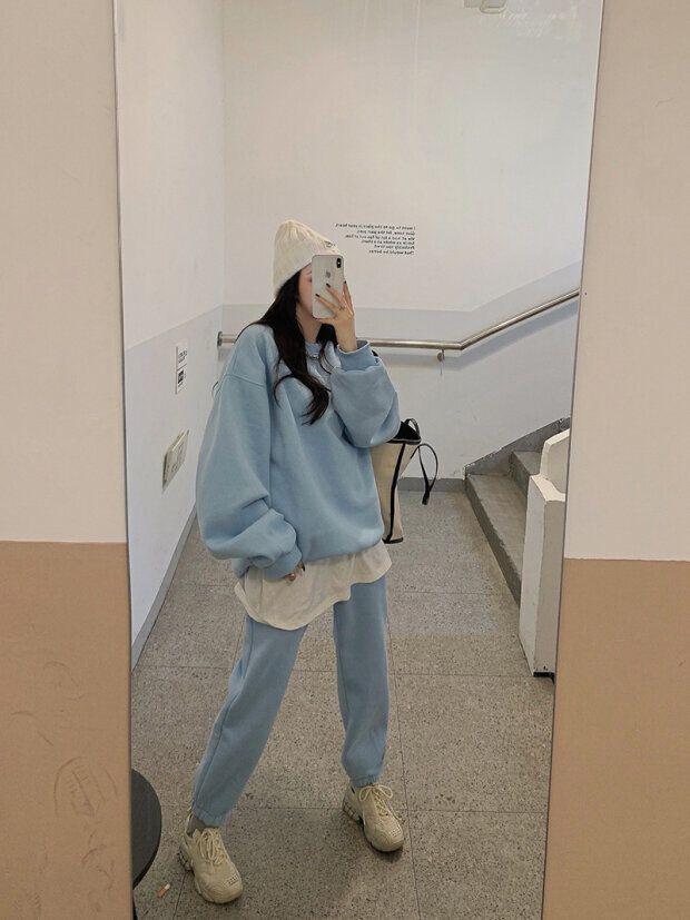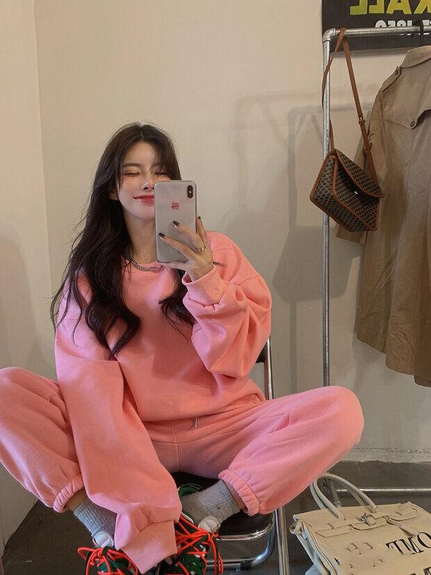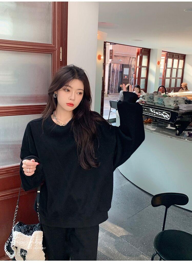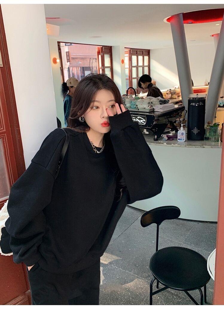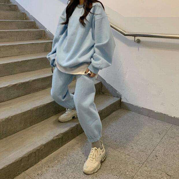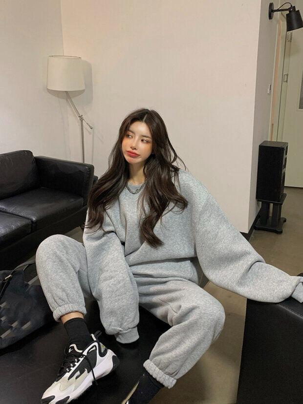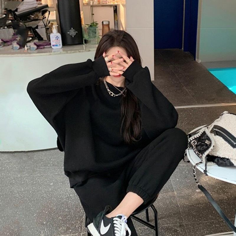 2023 traje deportivo de moda casual engrosado con forro polar para mujer otoño e invierno nuevo suéter suelto estilo occidental pantalones conjunto de dos piezas
