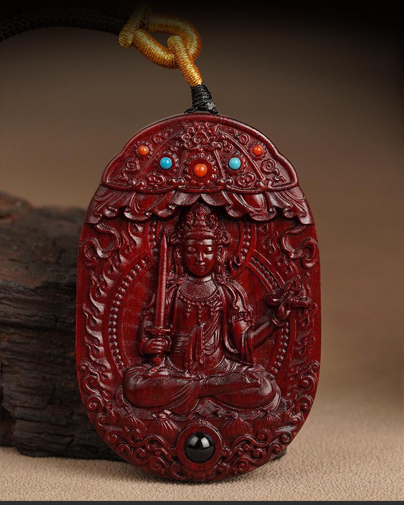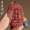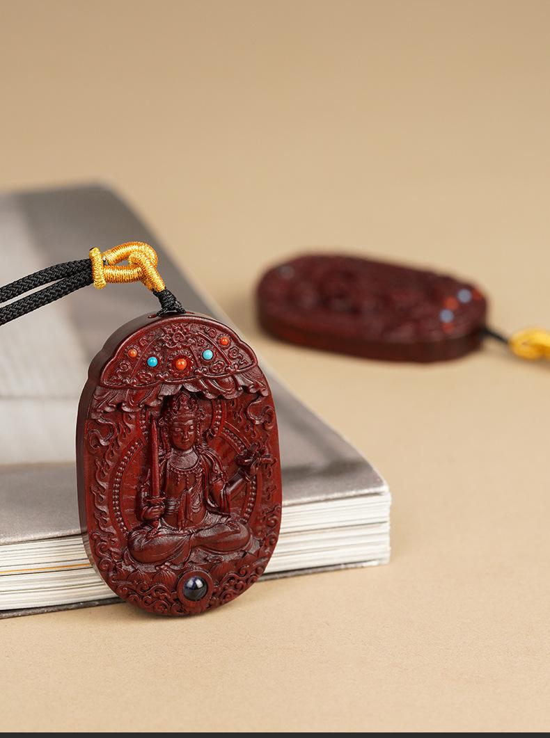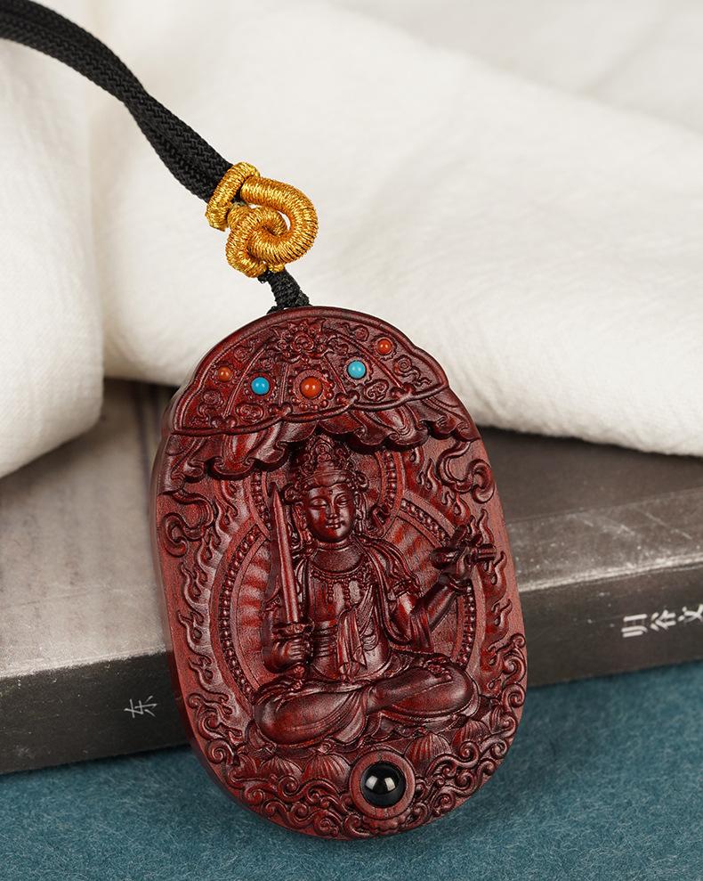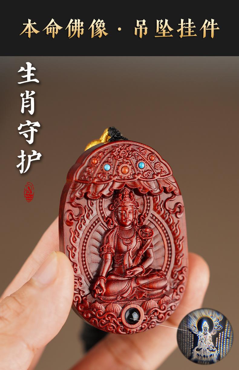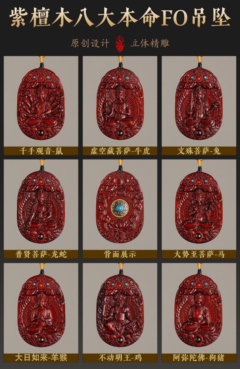 Amuleto de Buda de Palo de Rosa, Ocho Dioses Guardianes, Bodhisattva Puxian, Dragón y Serpiente, Doce Signos del Zodíaco, Talla Original del Buda Natal