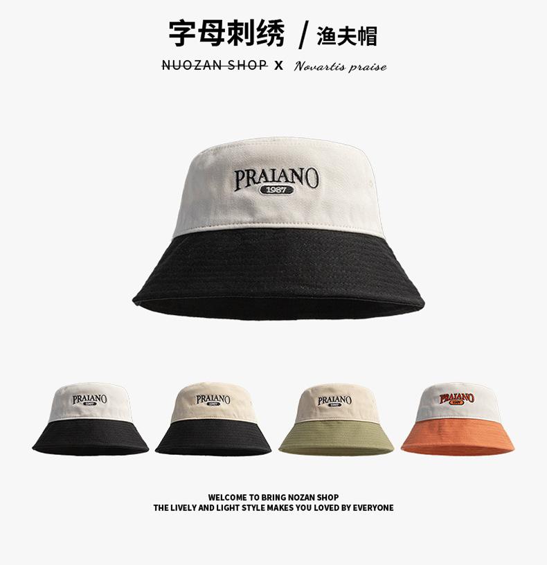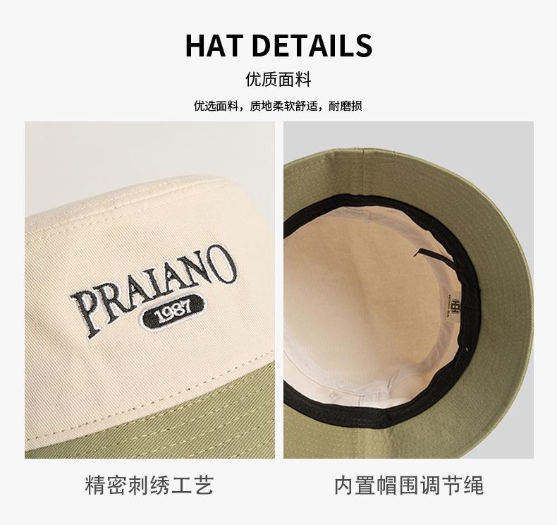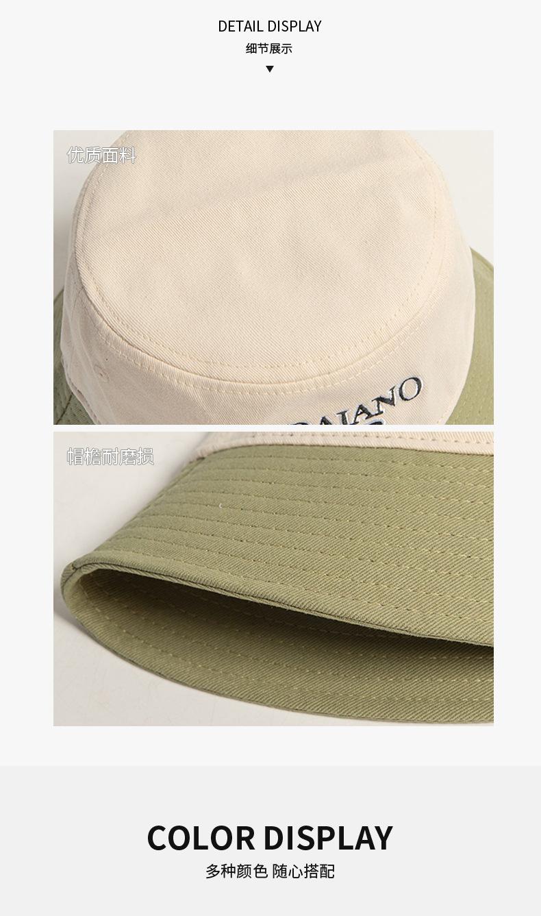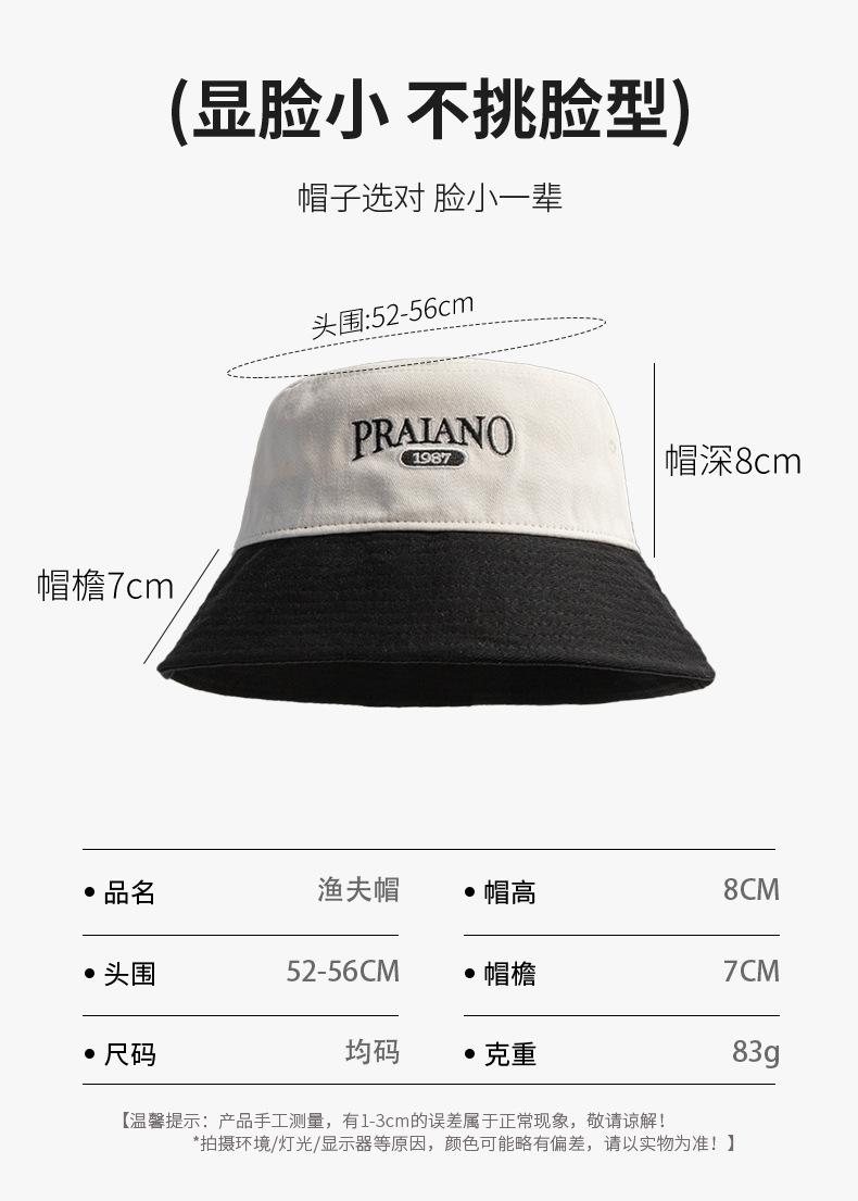 Sombrero de pescador fresco de estilo japonés para mujer, de verano, estilo coreano, con letras bordadas en la cara, pequeño gorro de lavabo, color a juego, protector solar que combina con todo.