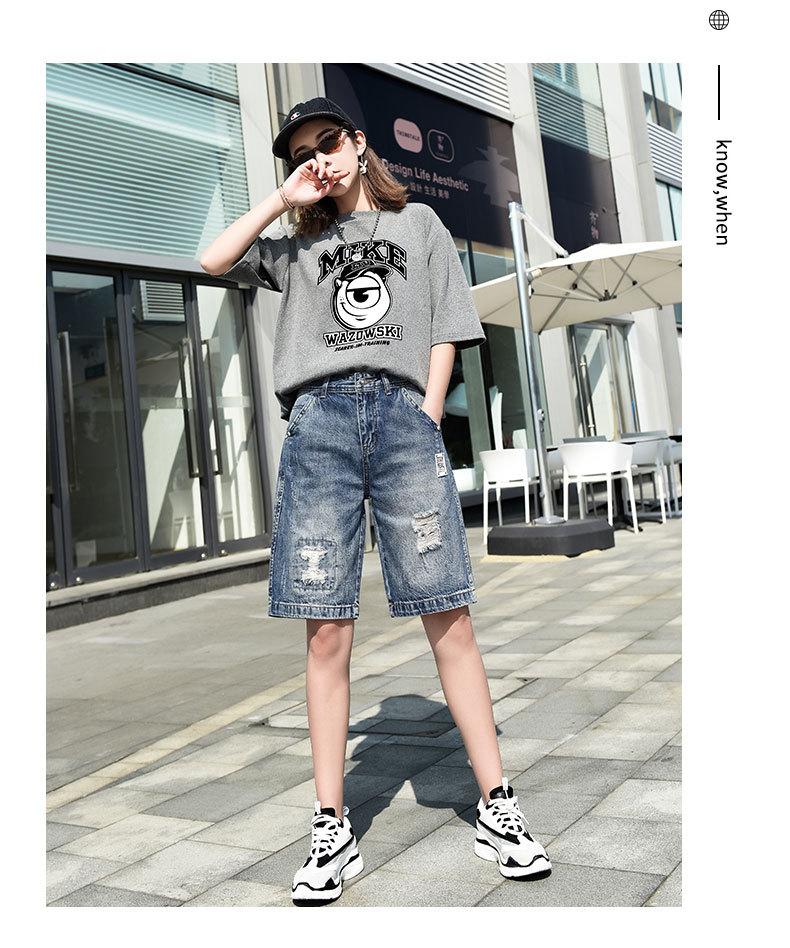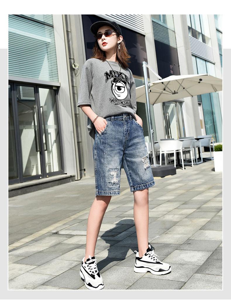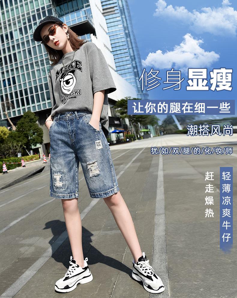 Jeans de Pierna Recta para Mujer, Verano Delgados Rotos Holgados de Cintura Alta Adelgazantes Delgados Pantalones de Verano para Muslos Gruesos