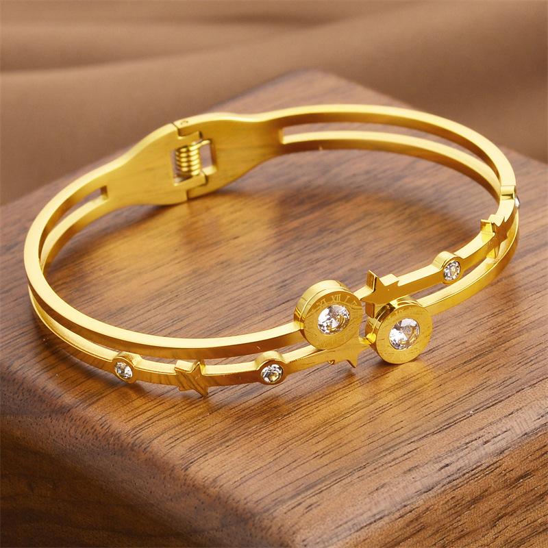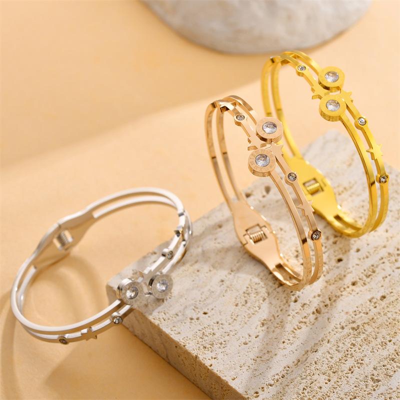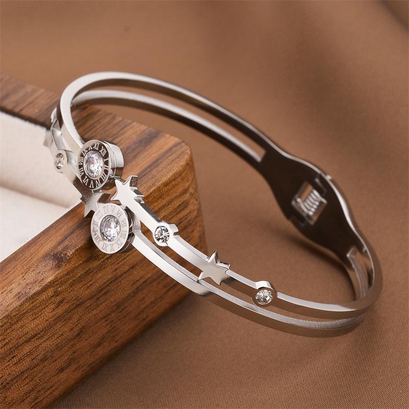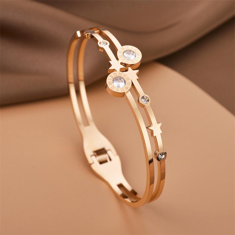 Pulsera sencilla de doble capa de estrella romana que no se desvanece, moda para mujer, acero de titanio, lujo ligero, pulsera abierta, pulsera de venta caliente europea y americana