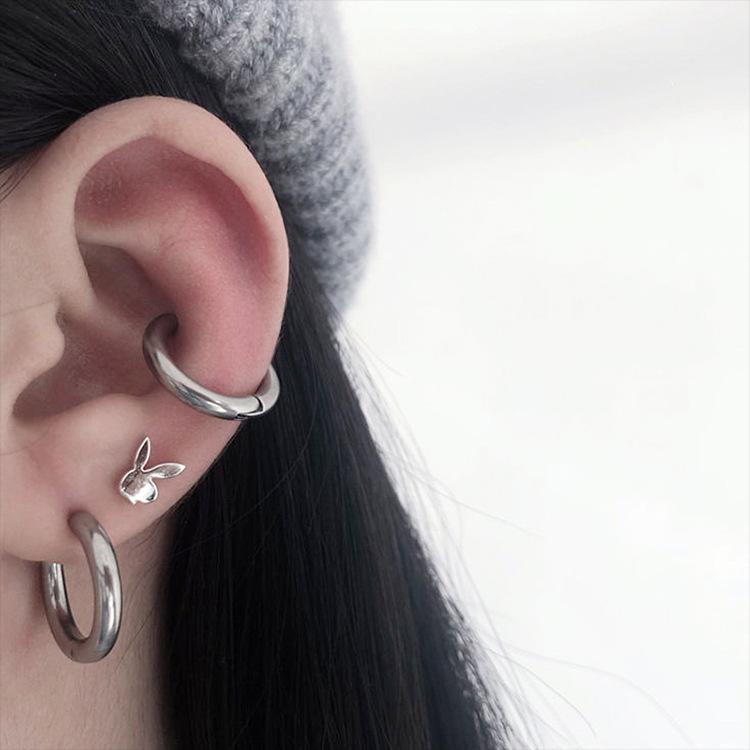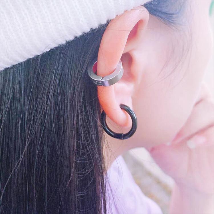 Clip para la oreja para orejas no perforadas tendencia cool Harajuku acero de titanio redondo aretes para hombres y mujeres clip para el hueso de la oreja punk clip coclear para orejas no perforadas femenino