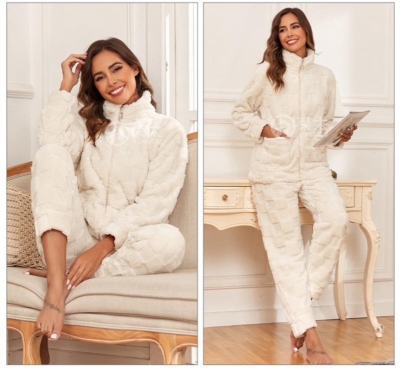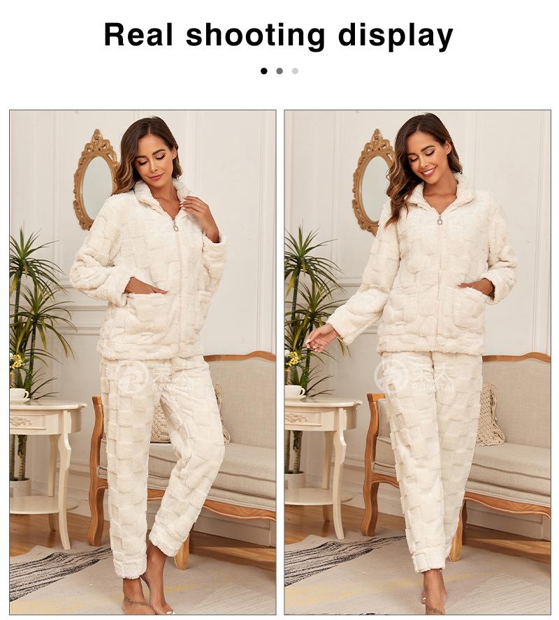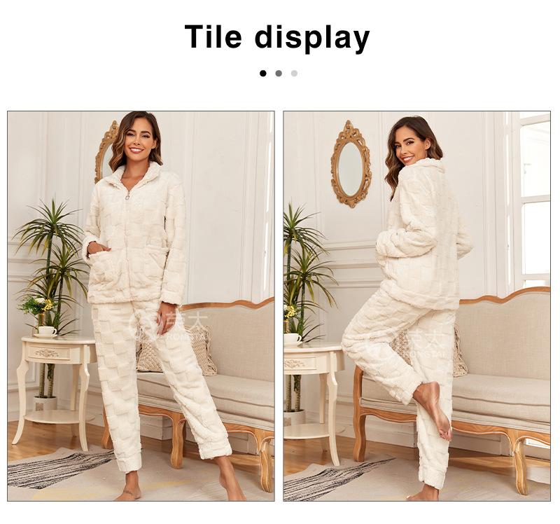 2023 Invierno engrosado cálido ropa de casa cómodo algodón terciopelo jacquard a cuadros traje cremallera casa pareja pijama