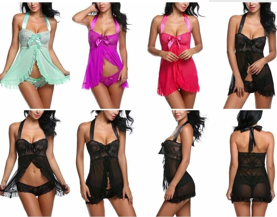 Encaje Sexy Lencería Sexy Europeo y Americano Transparente Tentación Pijama Sexy Conjunto Camisón Sexy de Malla para Mujer