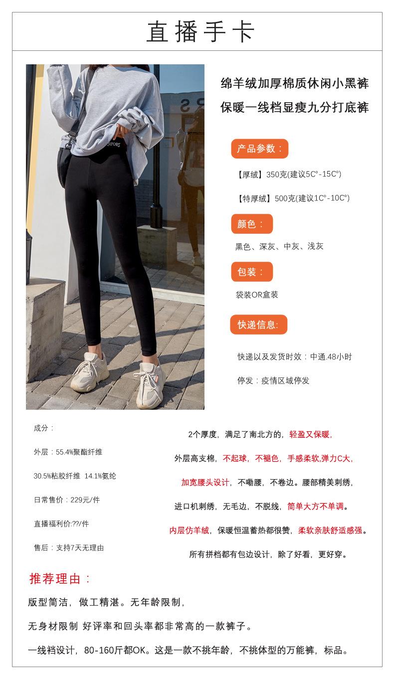 Otoño Nuevo Cachemira Algodón Grueso Casual Pantalones Pequeños Negros Cálido Primera Línea Adelgazante Leggings Nueve Puntos Ropa Exterior de Mujer