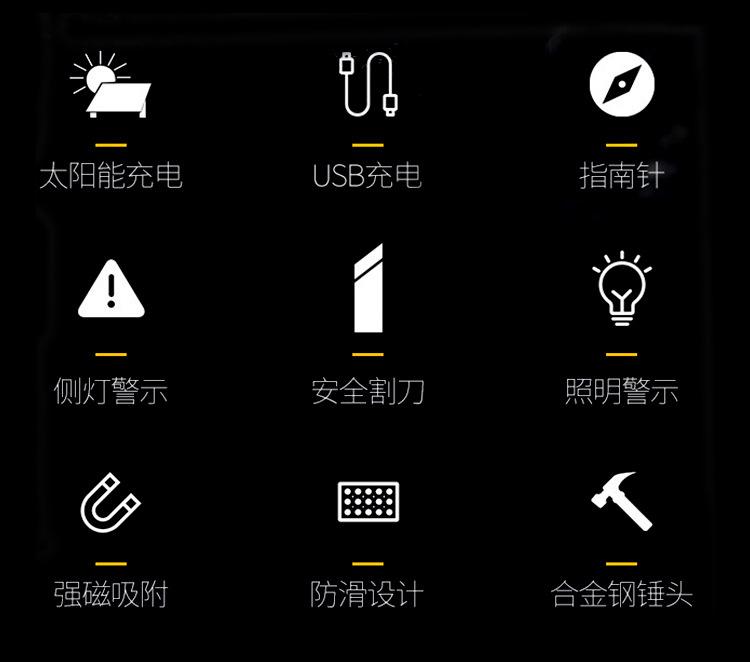 Martillo de seguridad multifuncional transfronterizo para automóviles, linterna solar, autorrescate para automóviles, escape de ventanas rotas, rescate de emergencia, martillo