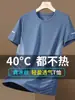Camiseta de seda de hielo para hombre, talla grande, manga corta, ropa de verano, fresca, de secado rápido, manga media, suelta, cuello redondo, camiseta deportiva
