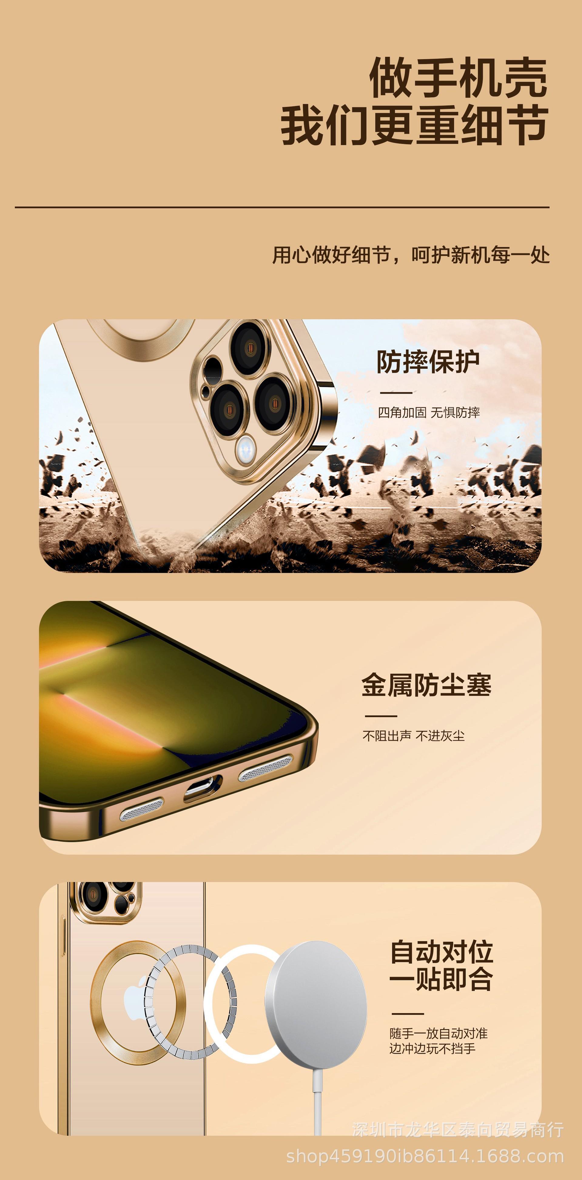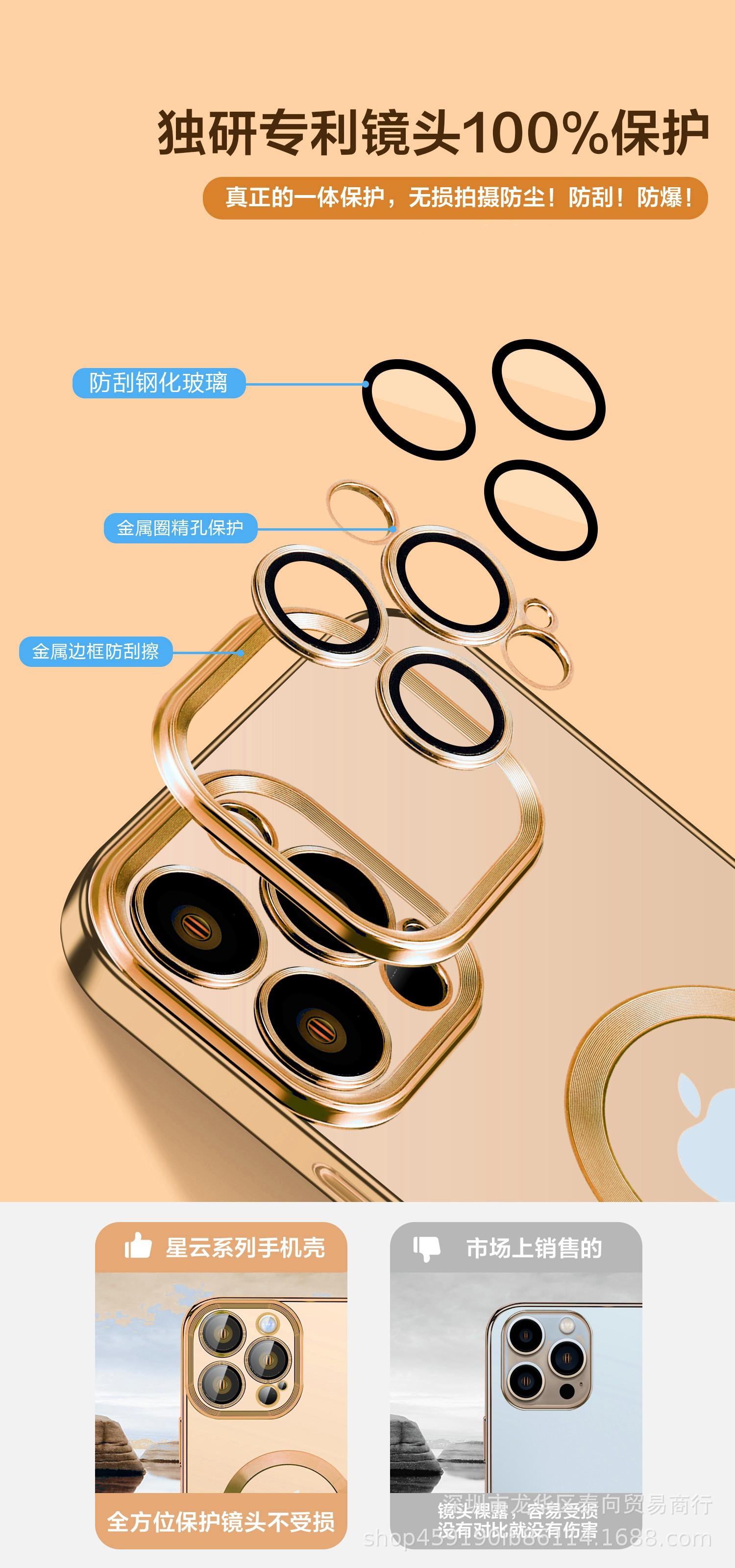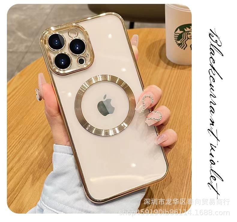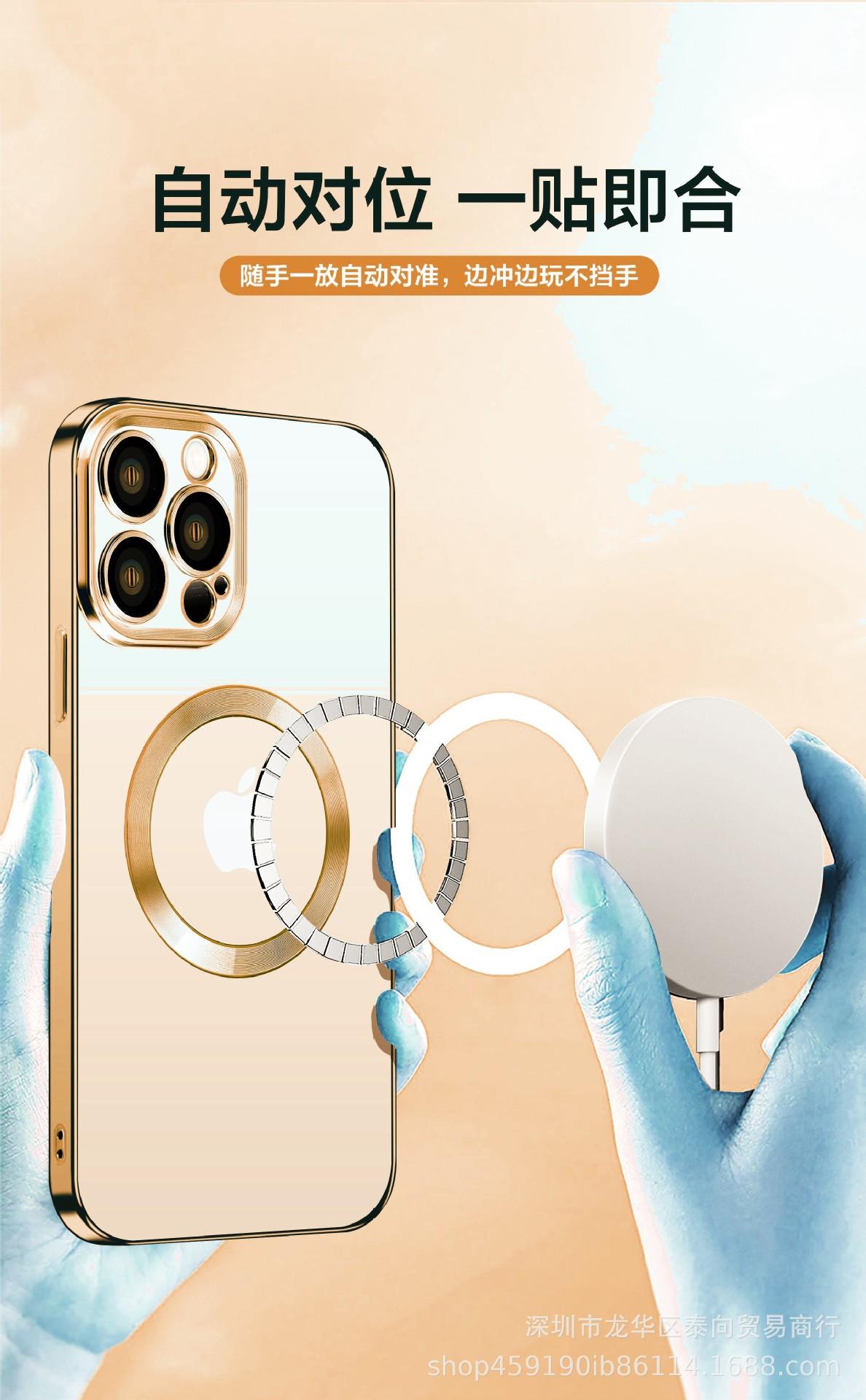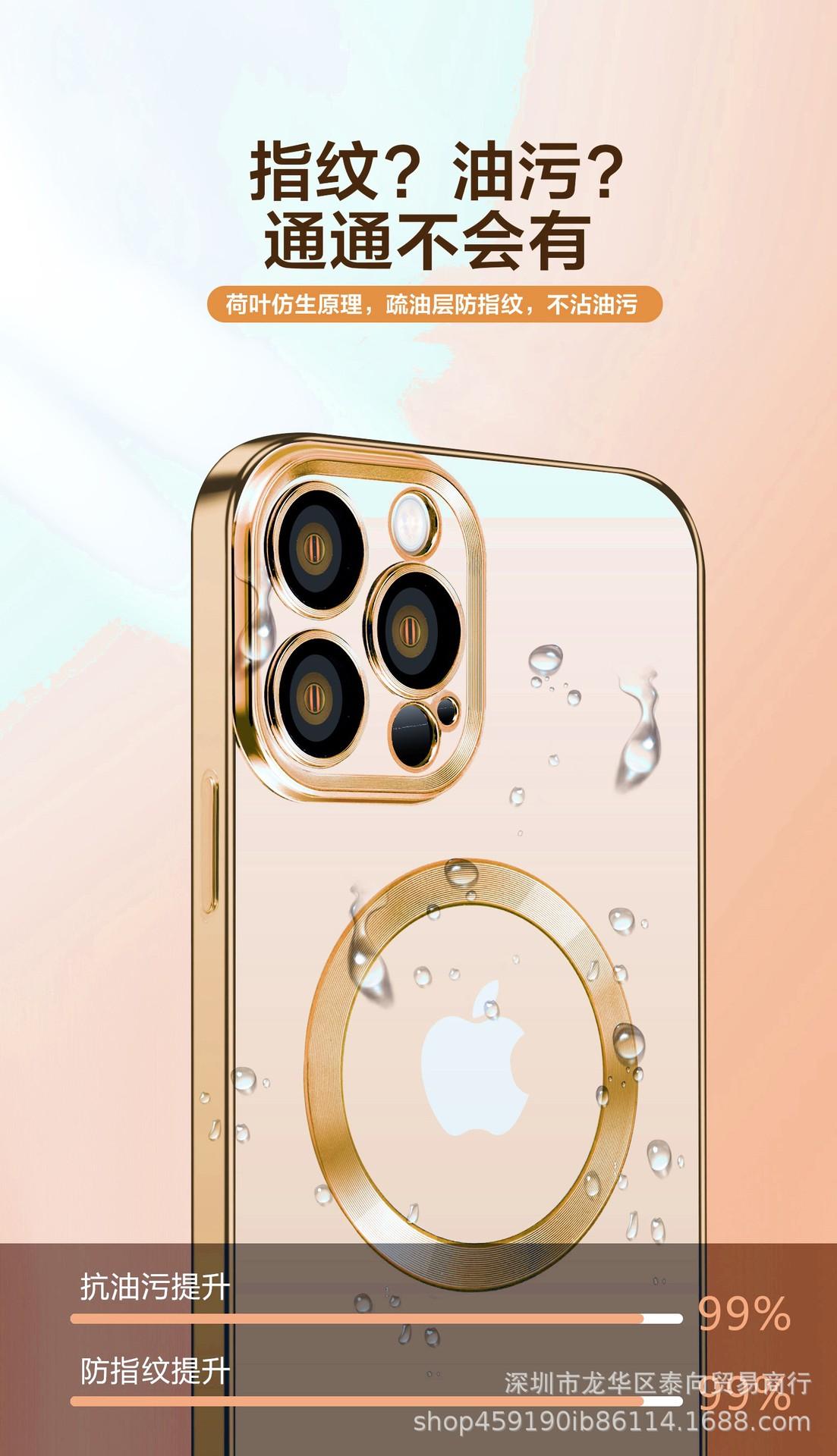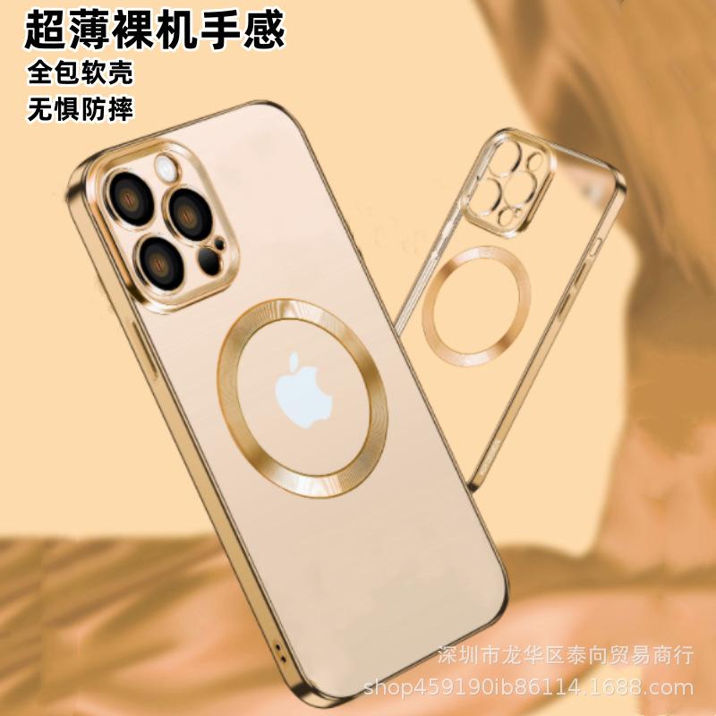 Transparent-gold [magsafe magnetic shell, silicone men and women, airbag drop-resistant, transparent soft shell]]