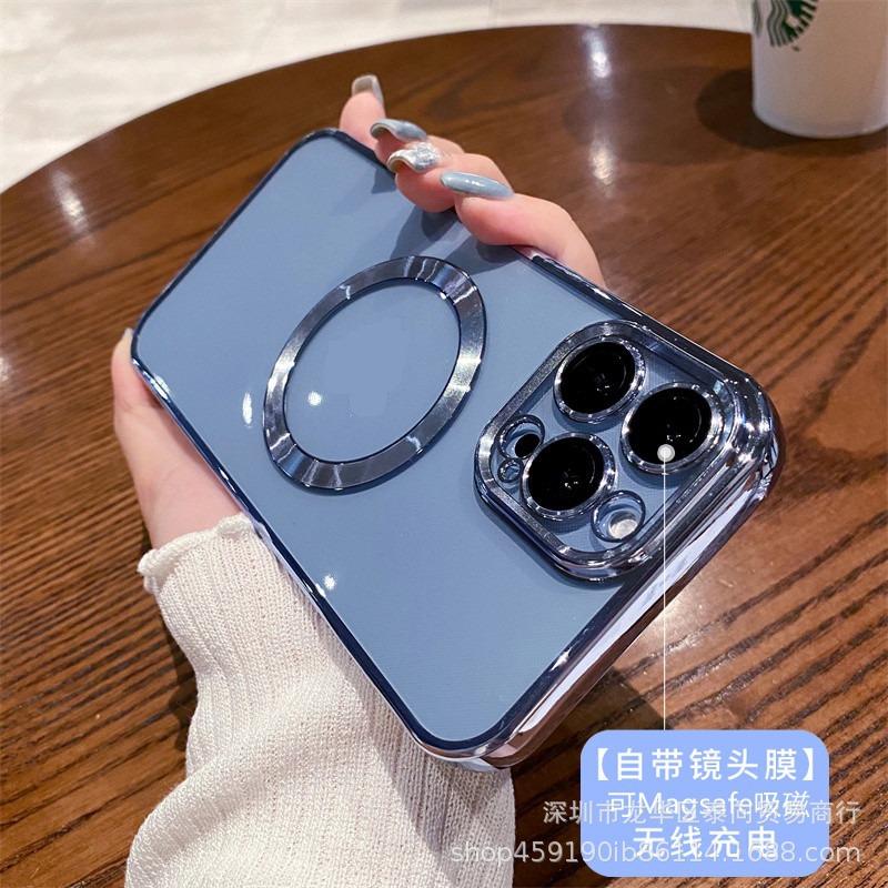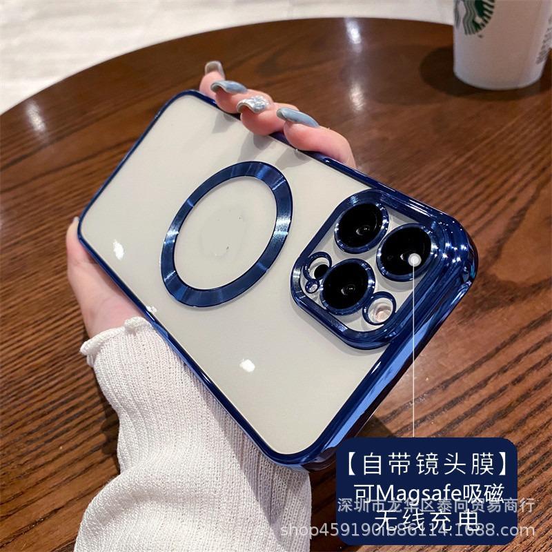 Transparent-midnight blue [magsafe magnetic suction shell, silicone men and women, airbag drop-resistant, transparent soft shell]]