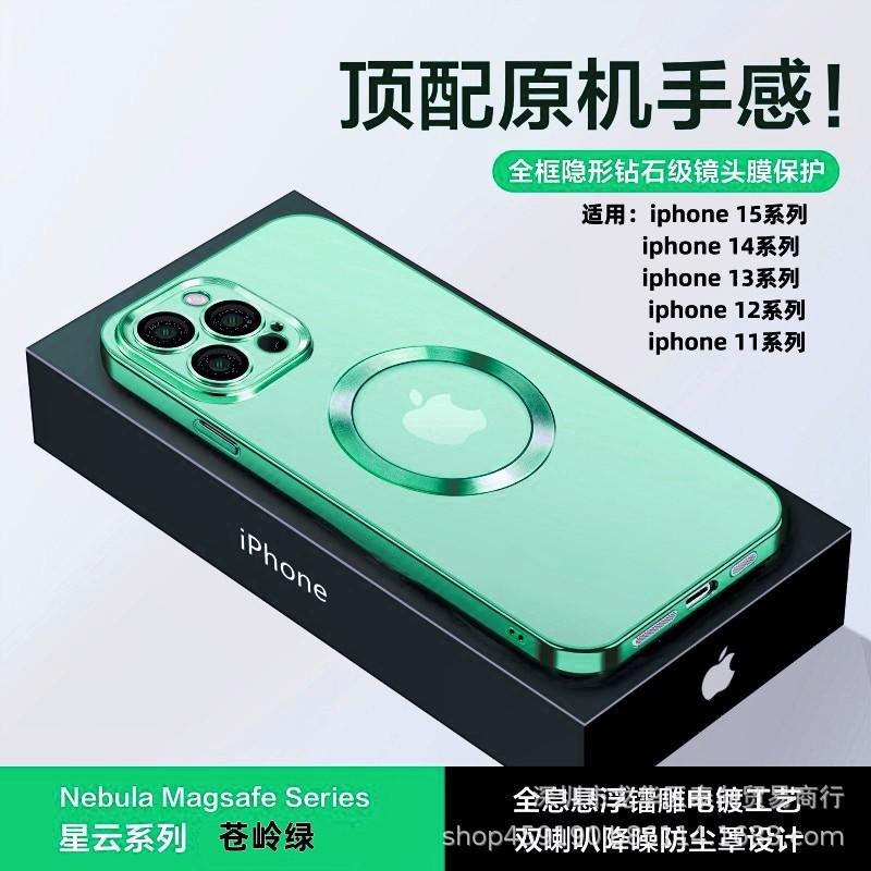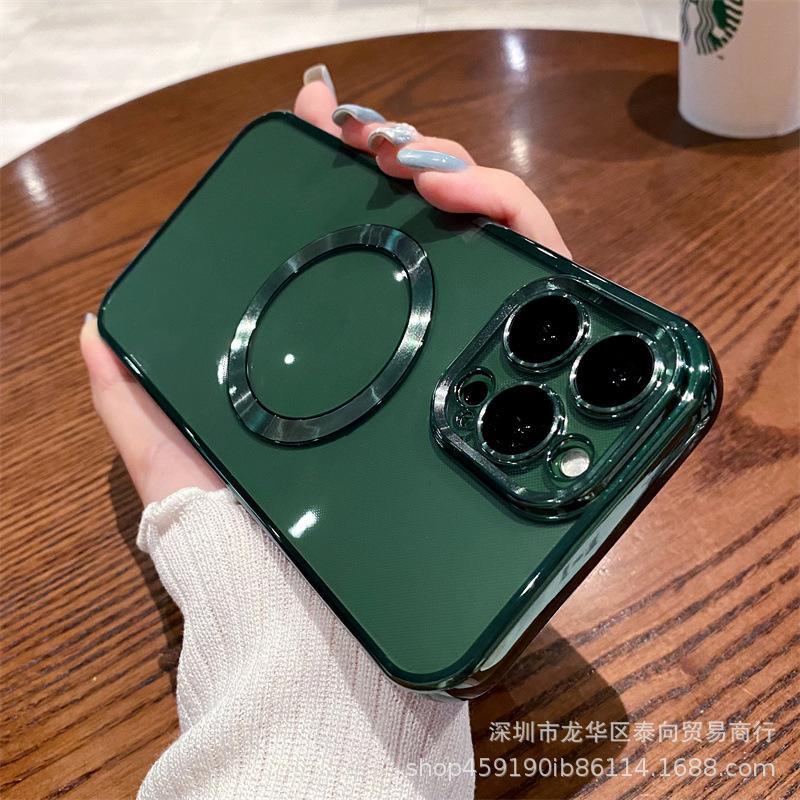 Transparent-cangling Green [magsafe magnetic suction shell, silicone men and women, airbag drop-resistant, transparent soft shell]]