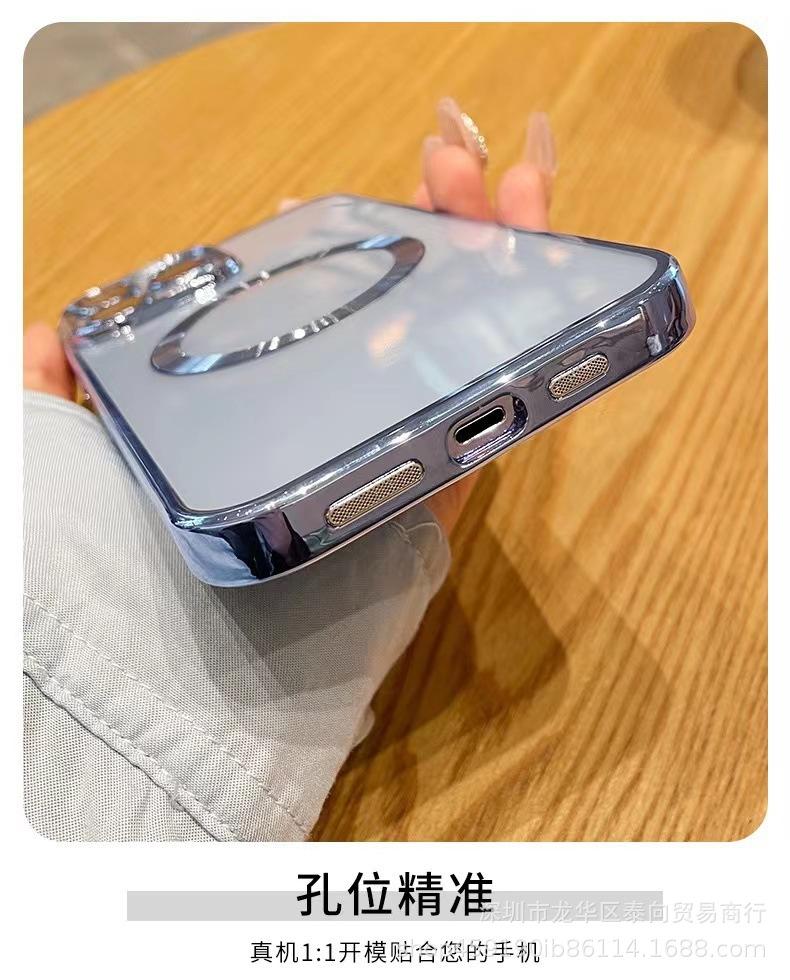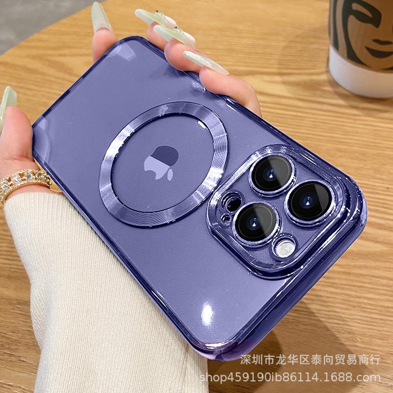Transparent-dark purple [magsafe magnetic suction shell, silicone men and women, airbag drop-resistant, transparent soft shell]]