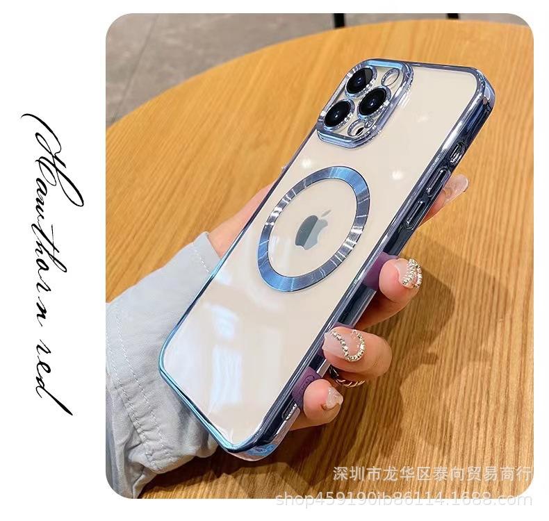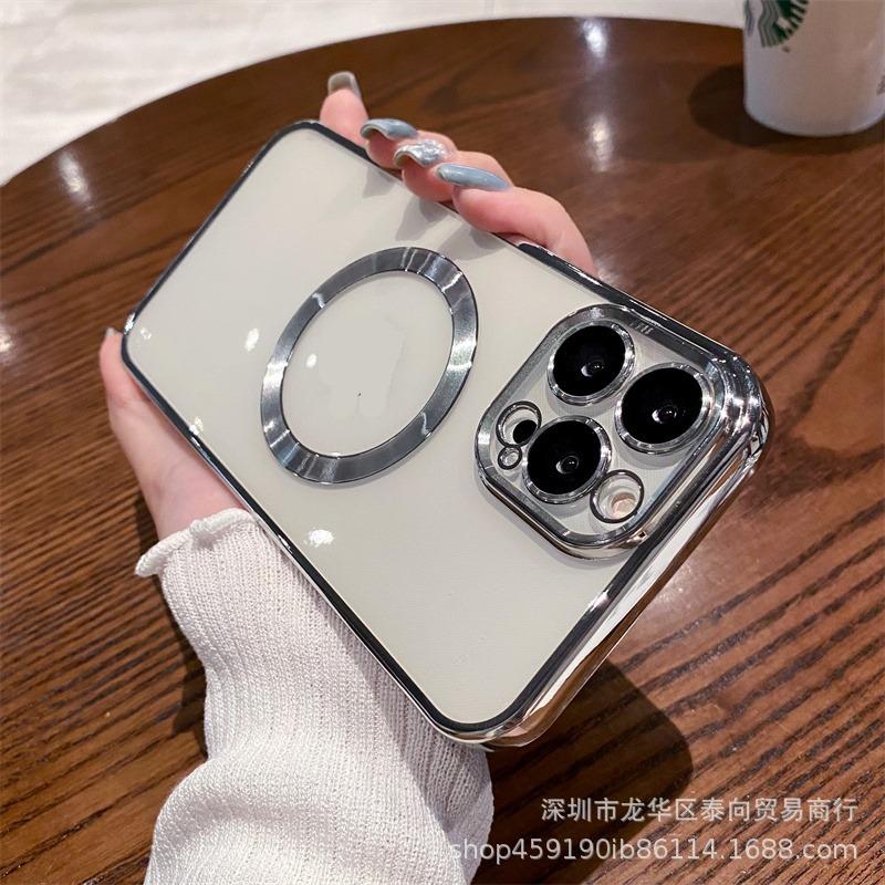 Transparent-silver [magsafe magnetic suction shell, silicone men and women, airbag drop-resistant, transparent soft shell]]