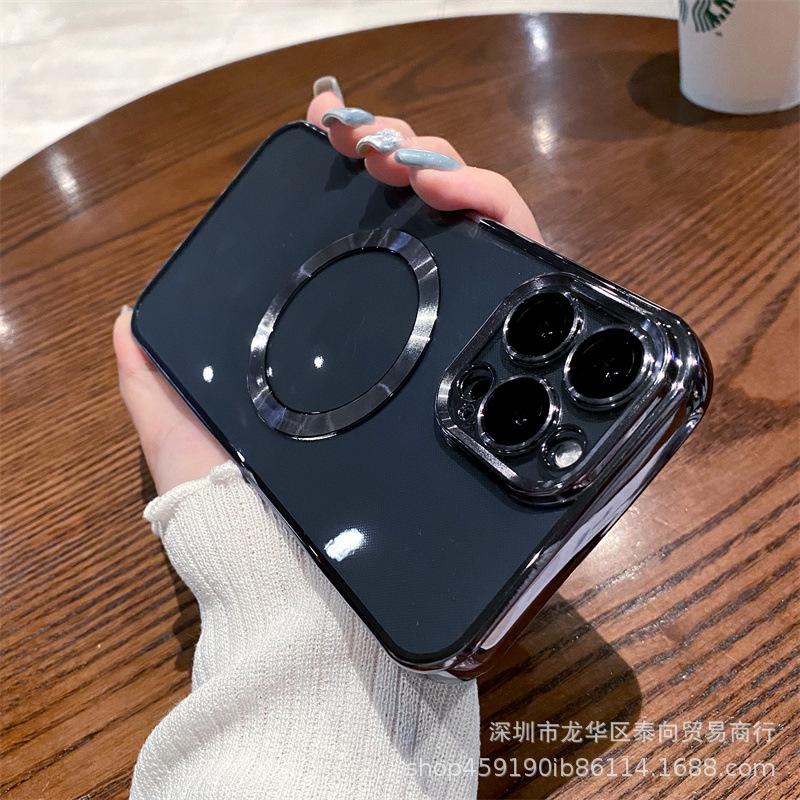 Transparent-black [magsafe magnetic suction shell, silicone men and women, airbag drop-resistant, transparent soft shell]]
