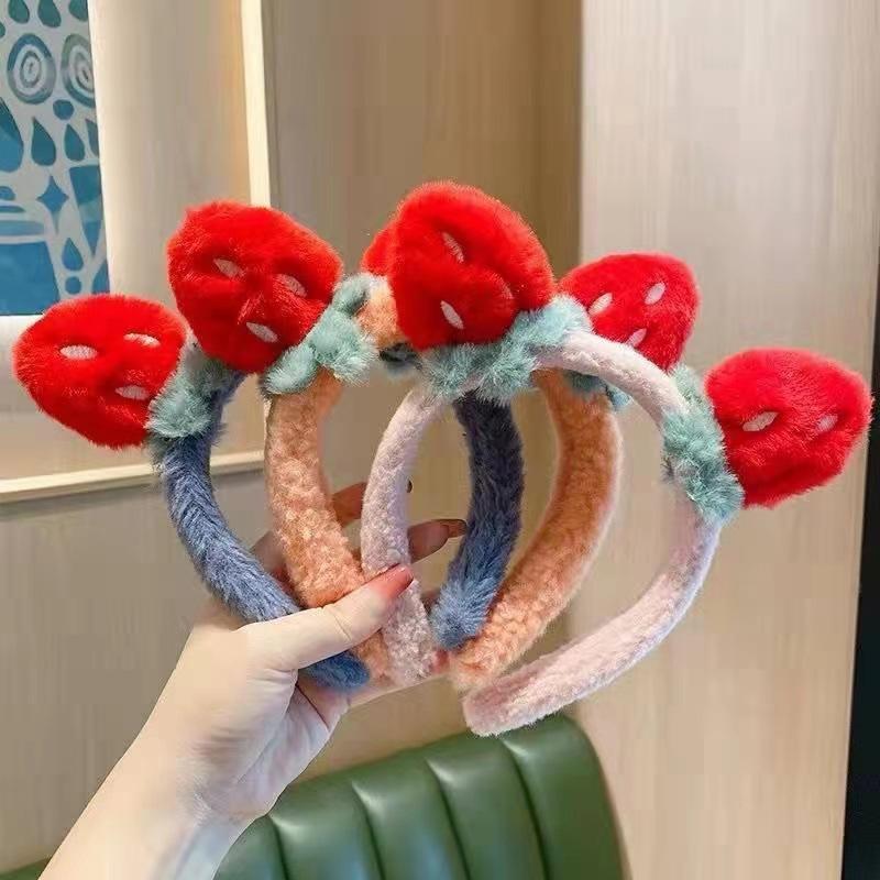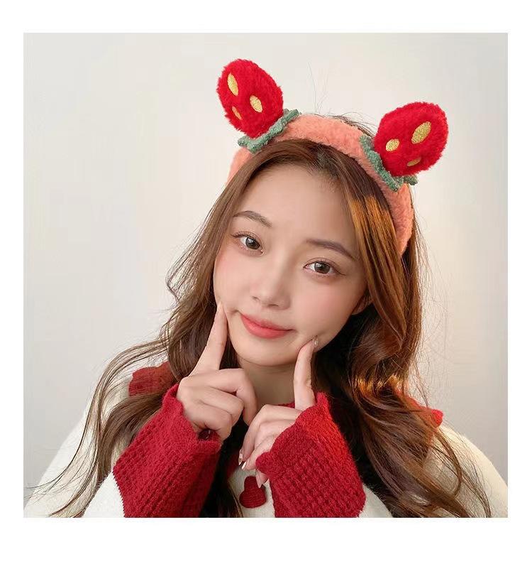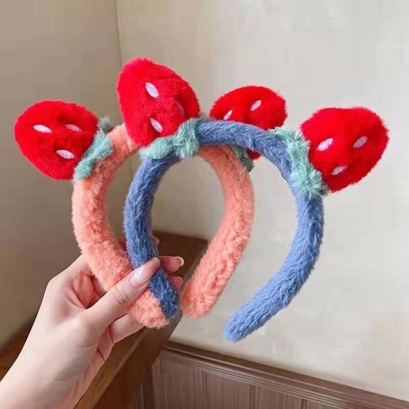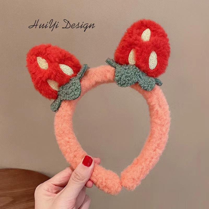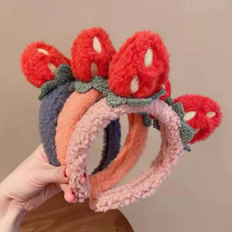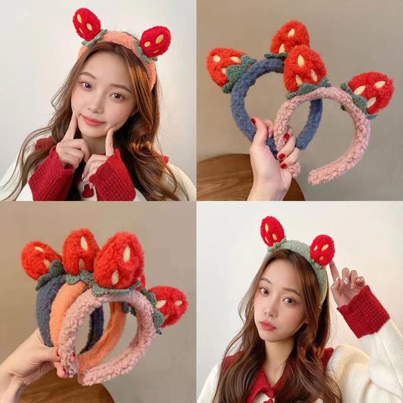 Celebridad de Internet: Lindo aro de pelo de fresa tridimensional para niña, maquillaje dulce necesario, lavado de cara, accesorios para el cabello, planchado de cabello coreano