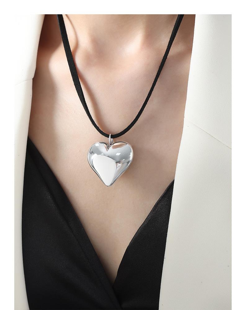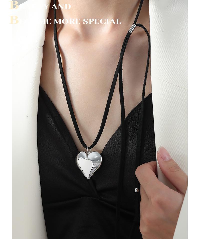 Collar de acero de titanio con colgante de amor elegante, estilo único de nicho europeo y americano, con cordón ajustable