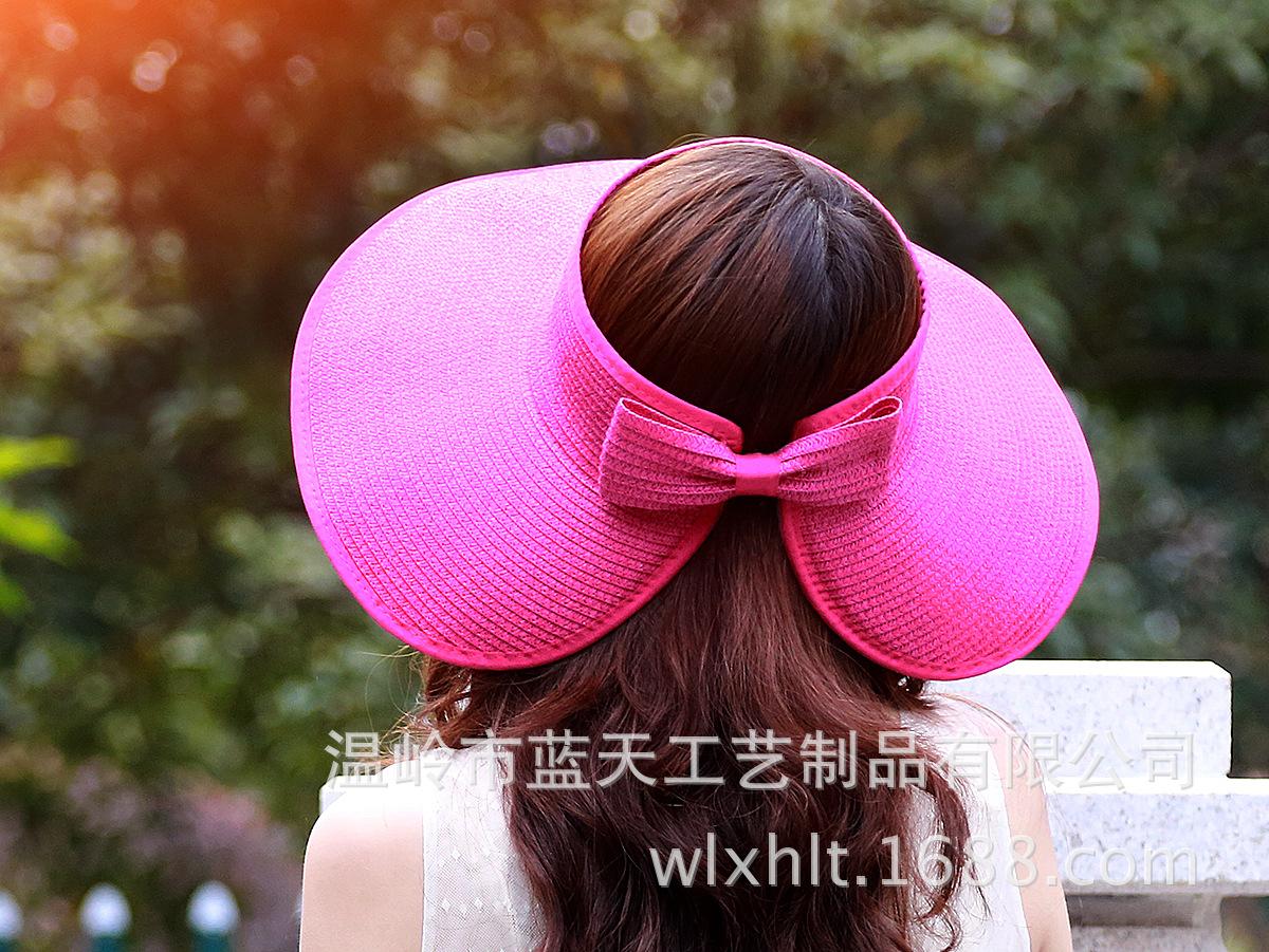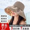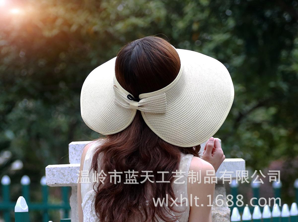 Sombrero de verano para mujer, con ala grande, parasol, protector solar, protección UV, sombrero de copa vacío, plegable, para playa, viajes, sombrero de paja transfronterizo