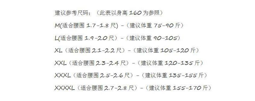 M (recommended weight 40-45kg ), L (recommended weight 45-52.5kg ), Xl (recommended weight 52.5-60kg ), Xxl (r...