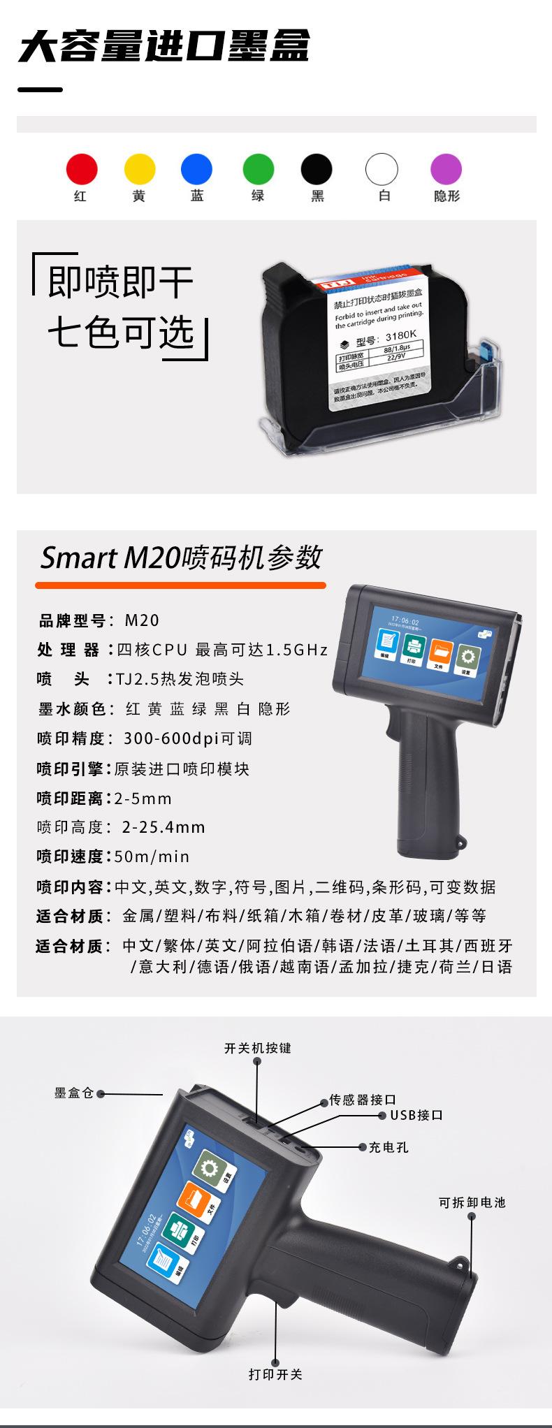 Impresora de inyección de tinta portátil pequeña m20, impresora de inyección de tinta Bluetooth en chino e inglés, para bolsas tejidas de 25,4 mm y cartón kraft.