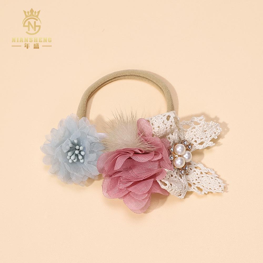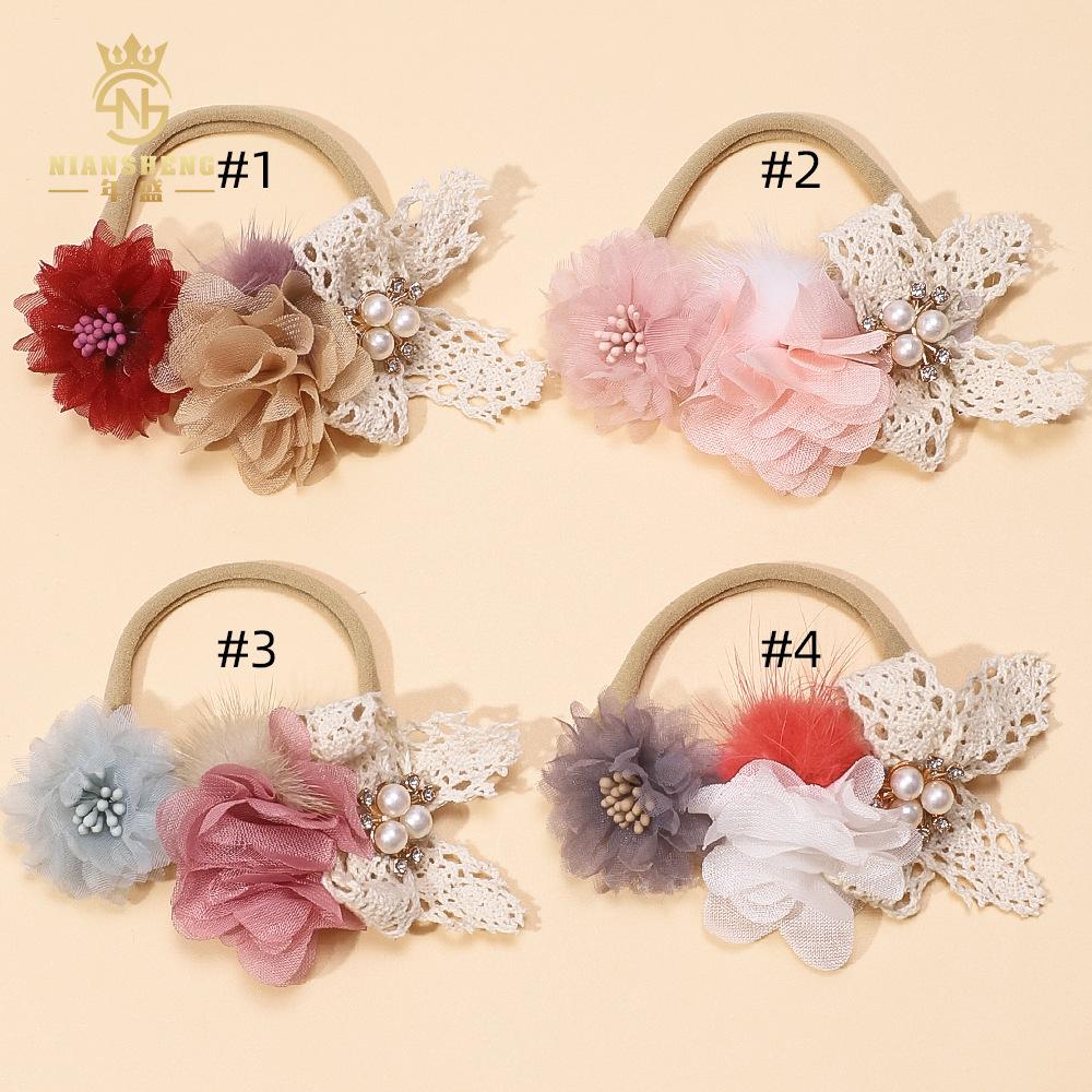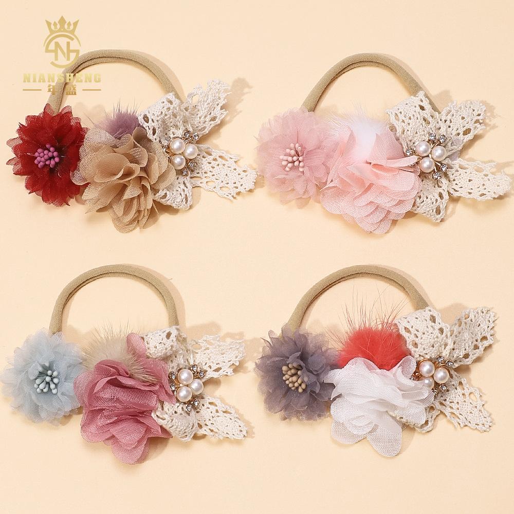 Banda para el cabello para niños, accesorios para el cabello de malla, suave, cómoda, dulce, combinación de flores, tocado, joyería para niñas, linda banda para el cabello para bebés