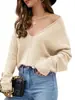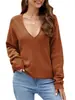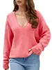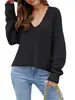 Top de punto con manga murciélago suéter estilo holgazán suéter de punto con cuello en V
