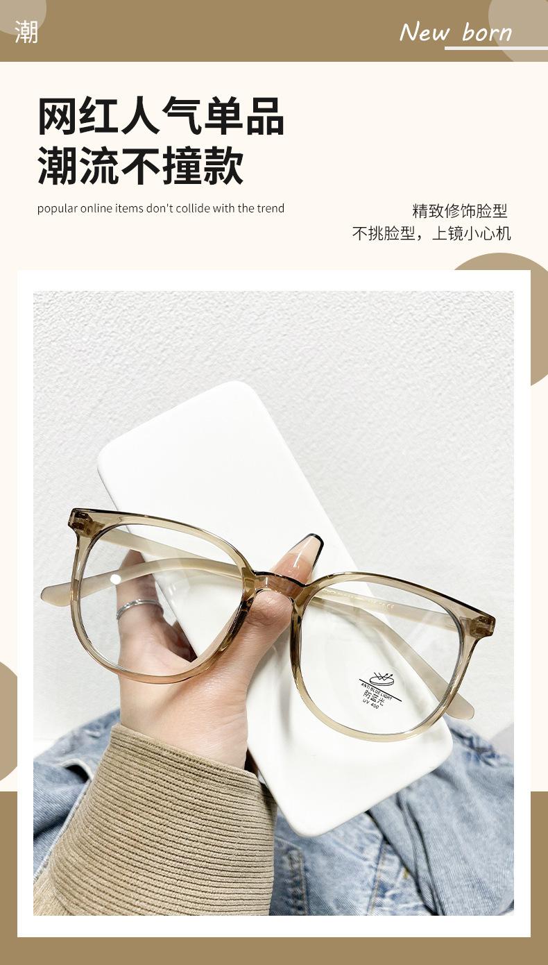 Nuevas gafas ultraligeras TR90 de gran tamaño con montura coreana antiluz azul para mujer, gafas marrones adelgazantes lisas que se adaptan a la miopía.