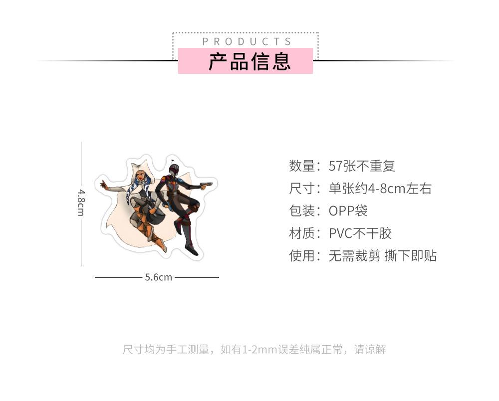 55 Nuevas Calcomanías Graffiti de Ahsoka para Decorar Maletas, Cuadernos, Guitarras, Calcomanías de Dibujos Animados Transfronterizas al Por Mayor