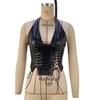 Amazon Transfronterizo Ropa Europea y Americana Moda Cuero PU Halterneck Sexy con Tirantes Chaleco Ajustado de Cintura Ropa de Mujer
