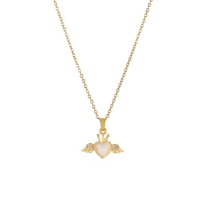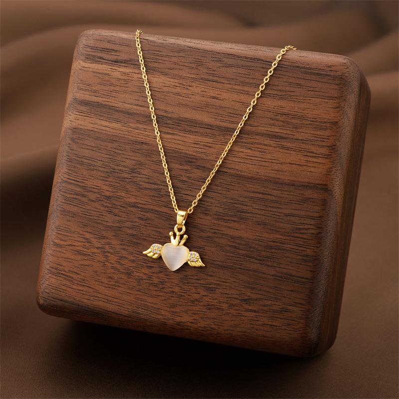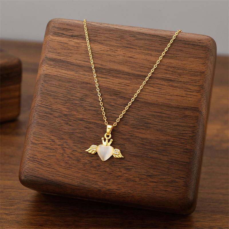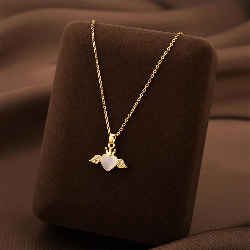 Collar Nicho Alas de Ángel Ojo de Gato de Alta Gama Colgante de Amor Temperamento Moda Acero de Titanio Cadena Clavícula Transfronterizo