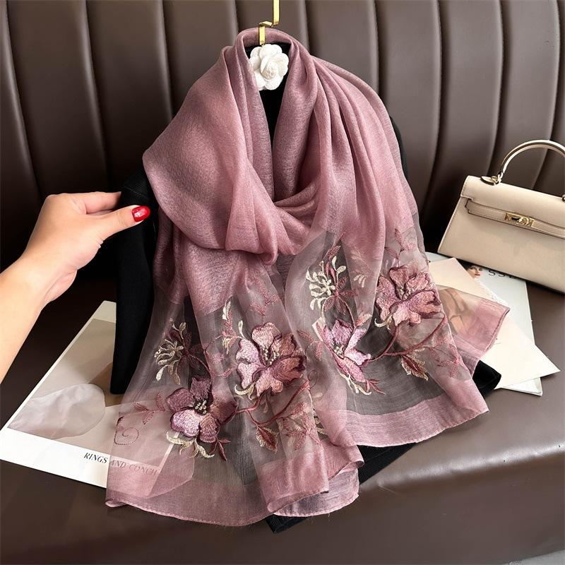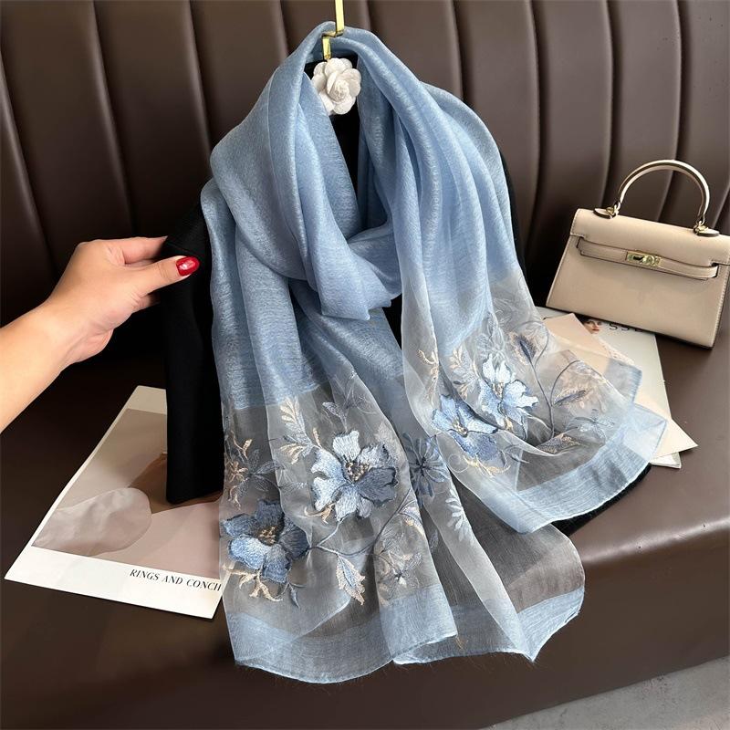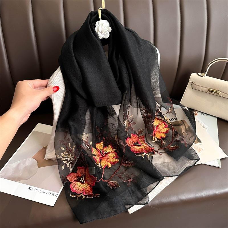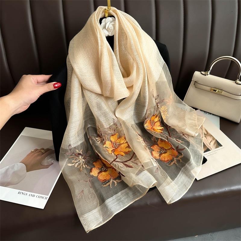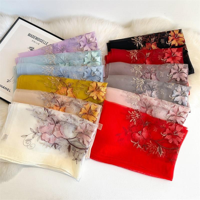 Otoño e Invierno Nuevo Estilo Bufanda de Seda Bordada a Mano Seda de Morera Bufanda de Seda Bordada Elegante Fácil de Combinar Chal Decorativo Venta al por Mayor