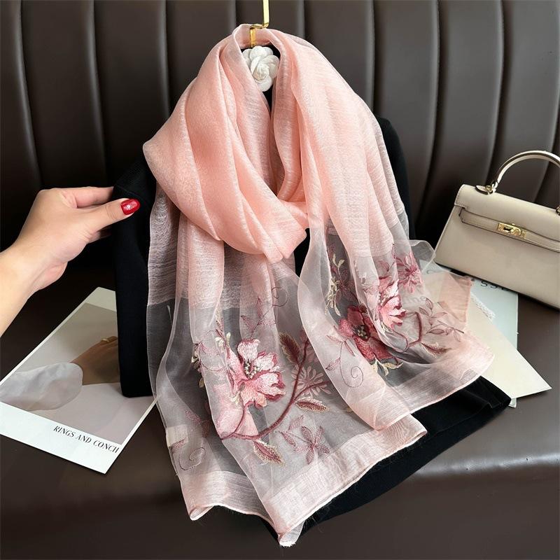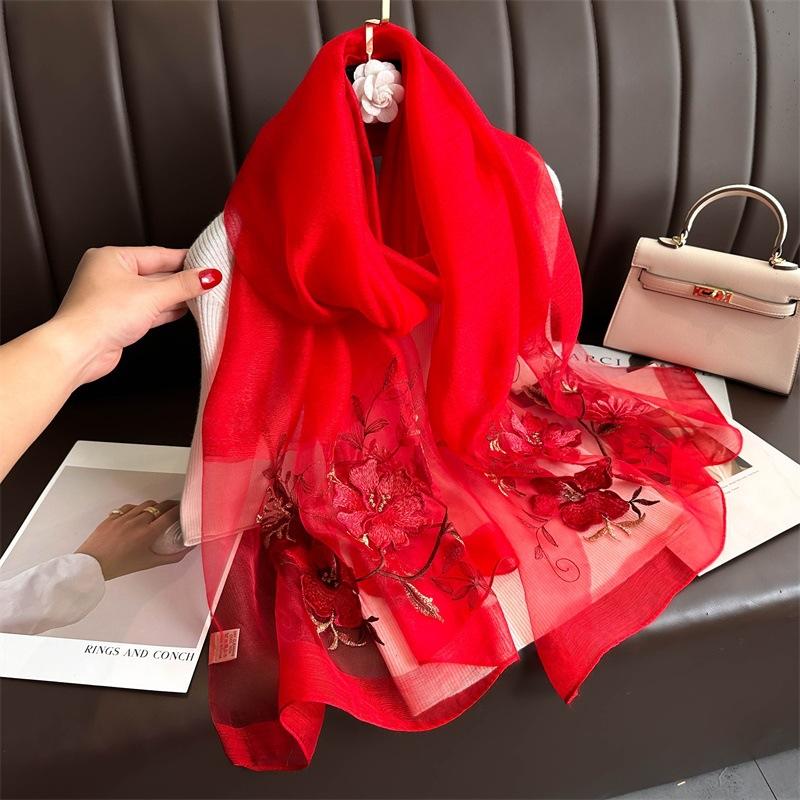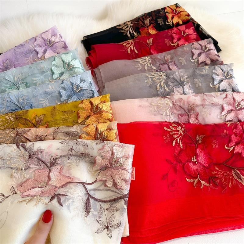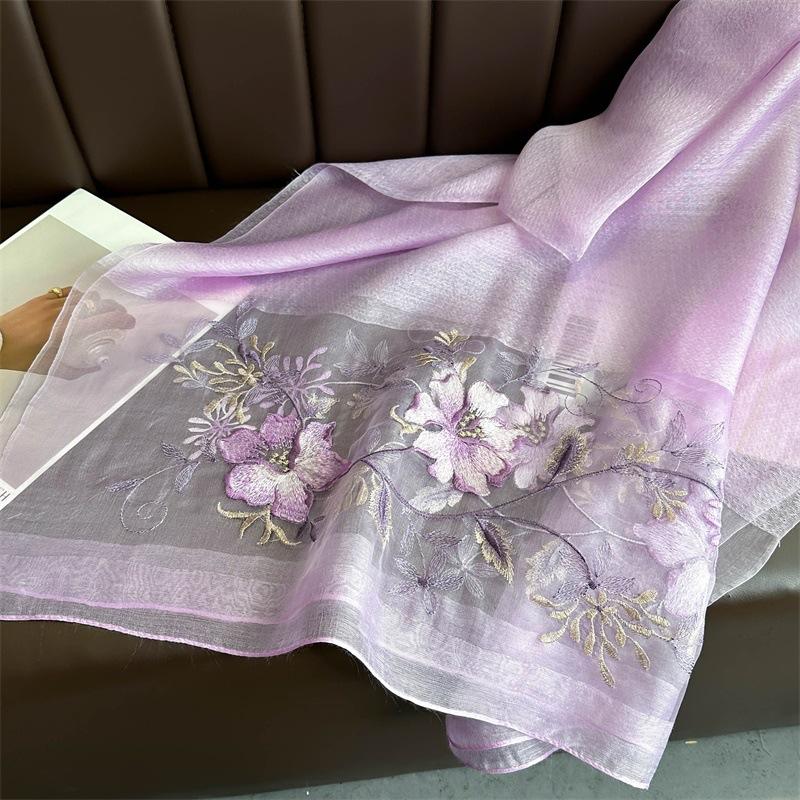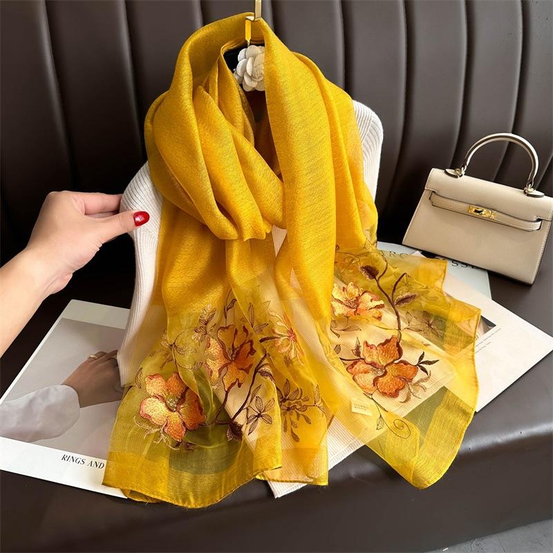Otoño e Invierno Nuevo Estilo Bufanda de Seda Bordada a Mano Seda de Morera Bufanda de Seda Bordada Elegante Fácil de Combinar Chal Decorativo Venta al por Mayor