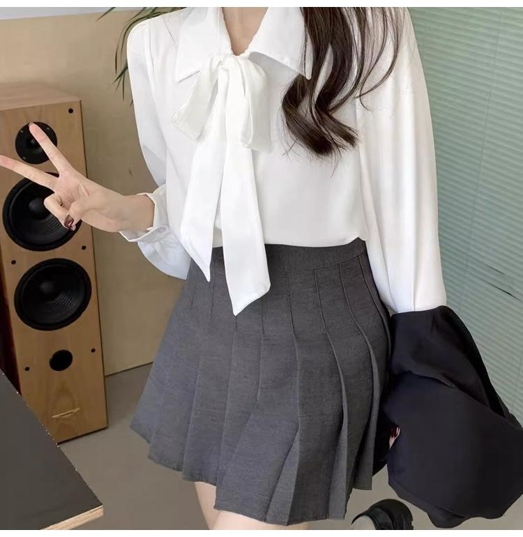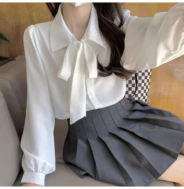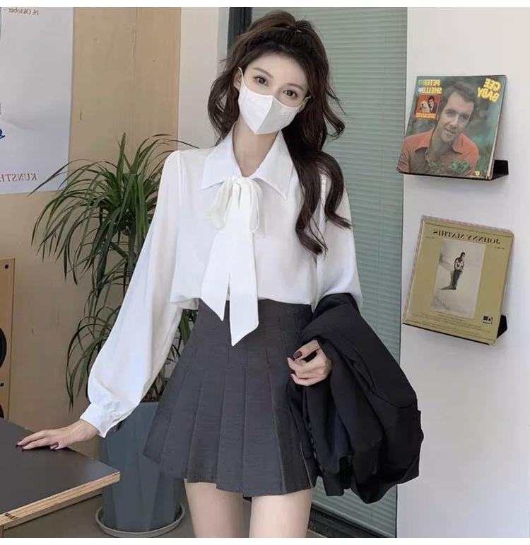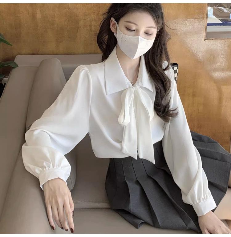 Camisa de manga farol para primavera y otoño, nueva camisa con lazo, camisa interior blanca, ropa formal para mujer, diseño con cordones, top profesional