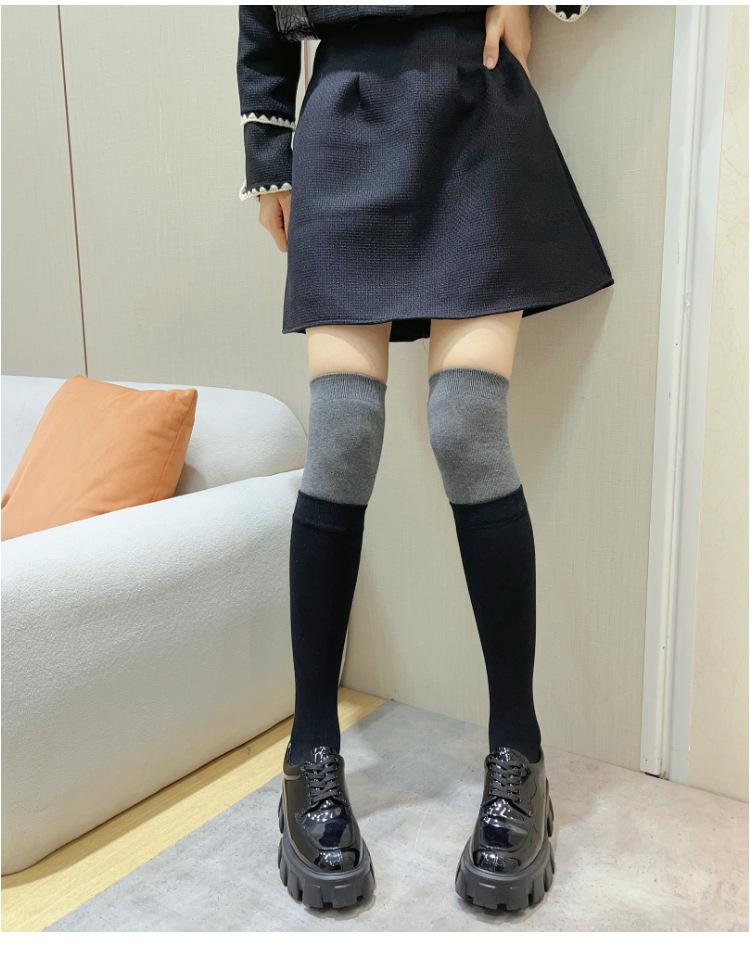 Calcetines por encima de la rodilla calcetines falsos de dos piezas para mujer calcetines de punto negros y grises para mujer calcetines altos de muslo negros de moda para mujer otoño e invierno Nuevo
