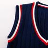 Chaleco para niños Primavera y Otoño Estilo Preppy Británico Niños y Niñas Bebé Cuello en V Algodón Tejido Chaleco Uniforme de Clase Chaleco Exterior