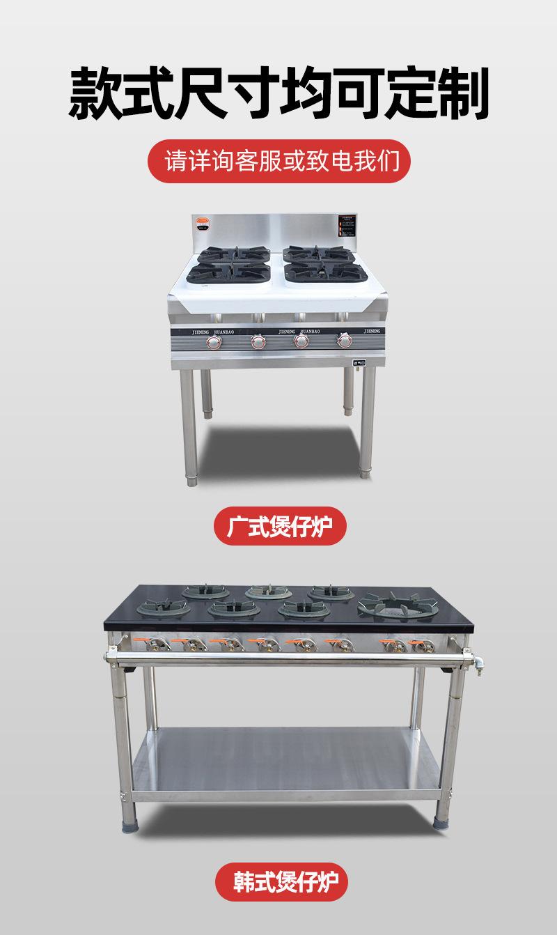 One-piece four-eye cooker 750*850*800, One-piece six-eye cooking pot 1100*850*800, One-piece eight-eye cooking pot 1450*850*800