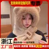 Gorro cálido para adultos, lindo oso, gorro de una pieza con forro polar, gorro de felpa grueso para exteriores, gorro versátil de estilo coreano cuatro en uno