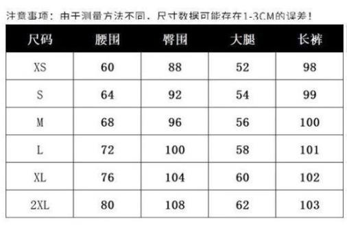 XS, S, M, L, XL, 2XL