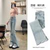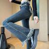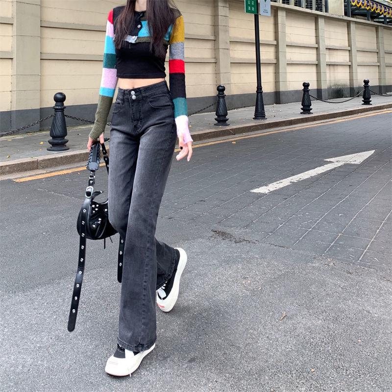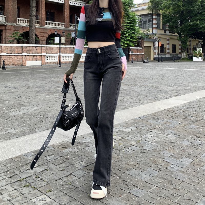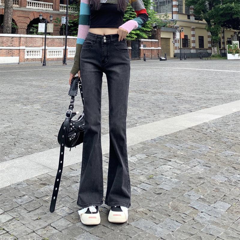 Pantalones vaqueros elásticos Micro-Lar negros y grises para mujer, cintura alta, verano 2023, finos, ajustados, acampanados.