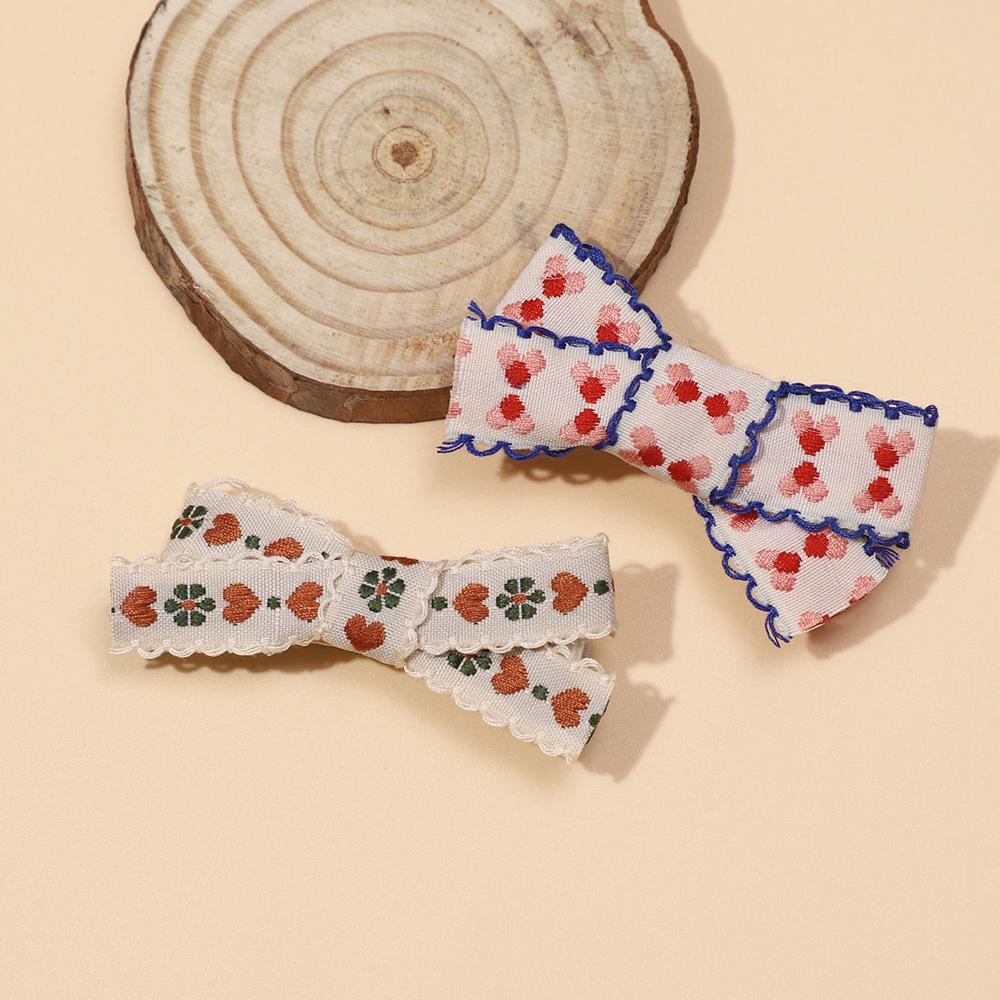 Nuevo tocado infantil transfronterizo de Europa y Estados Unidos, bonito lazo bordado con pinza para el pelo de encaje, pinza para el pelo para niñas que no dañan la pinza.