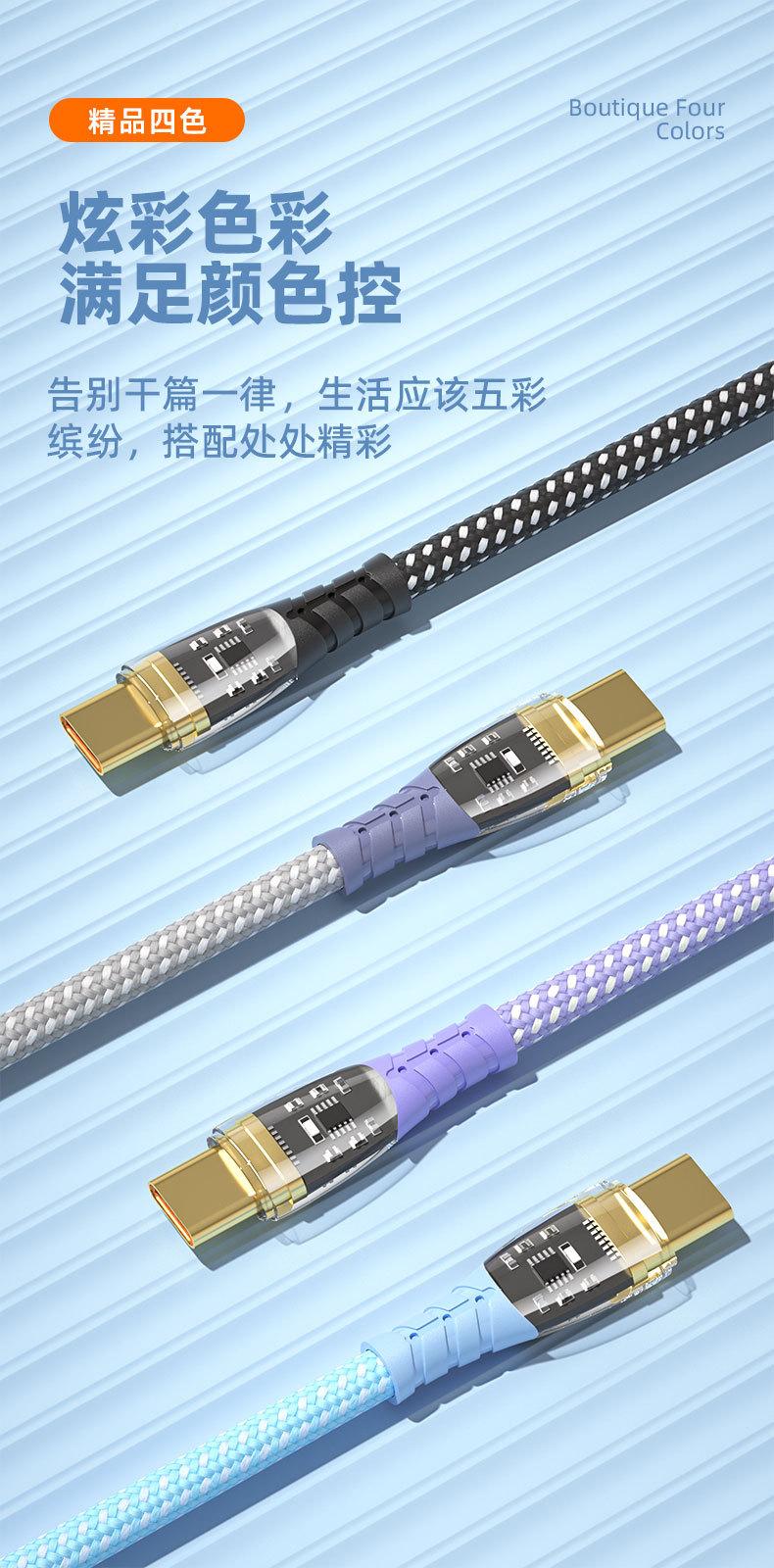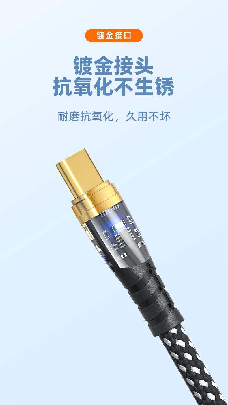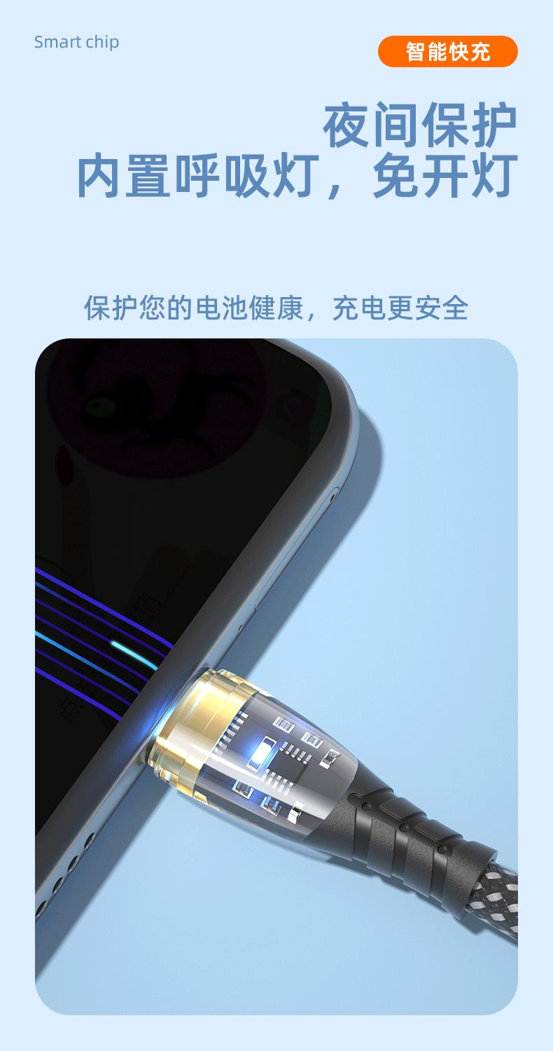 PD27W/66W para Carga Super Rápida Huawei Apple 14 Doble Boca C Cable de Datos Trenzado Transparente Emisor de Luz