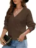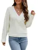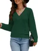 Suéter de punto con cuello en V, suéter de punto de color liso, suéter de estilo perezoso