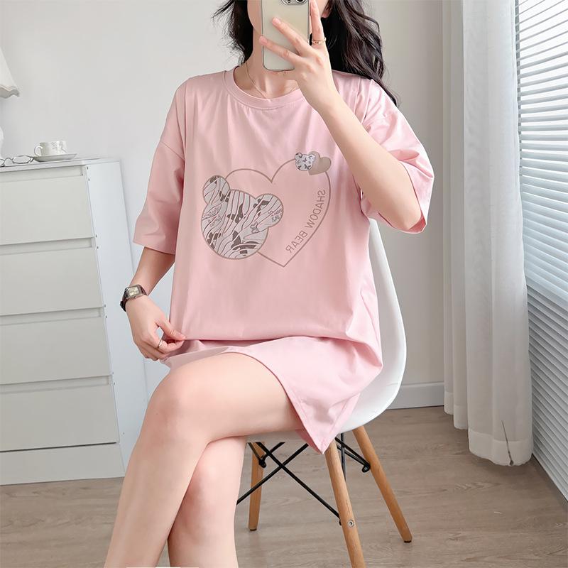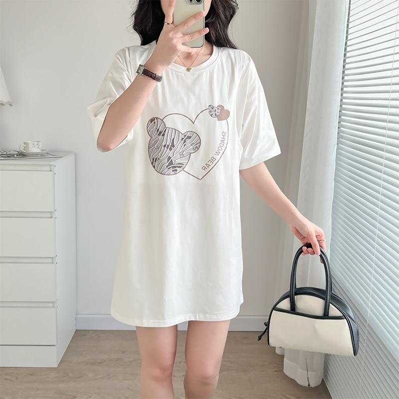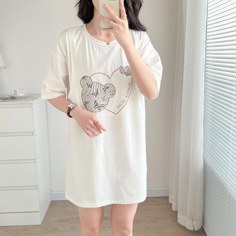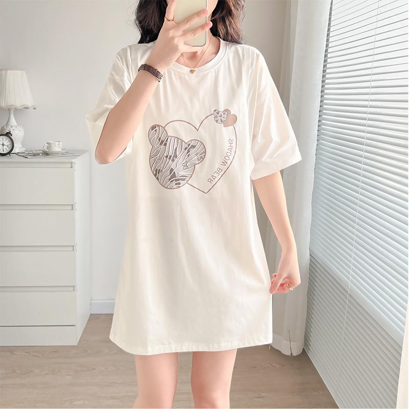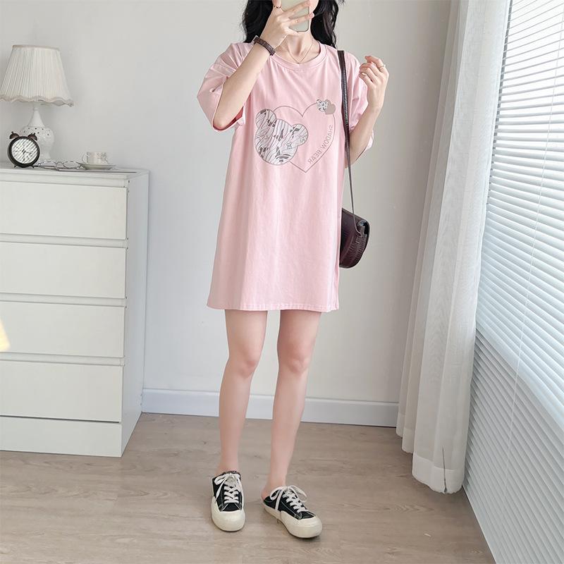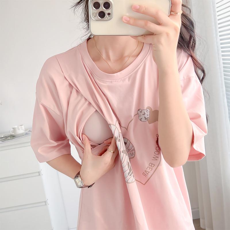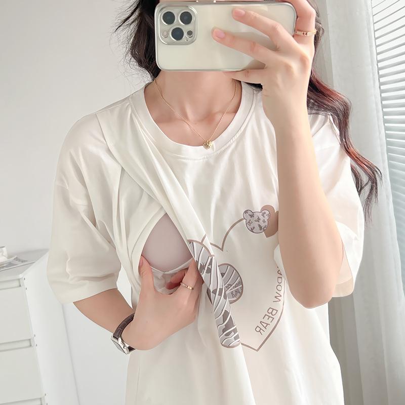 Camiseta de maternidad de verano de manga corta y largo medio, holgada, talla grande, de algodón, ropa de maternidad, ropa exterior posparto, ropa de lactancia