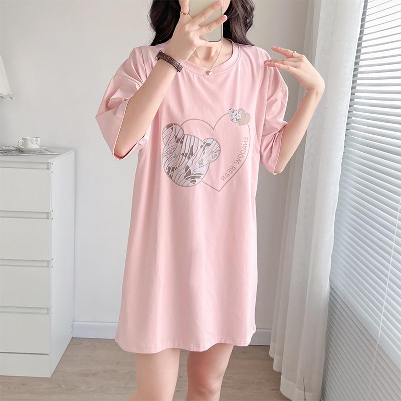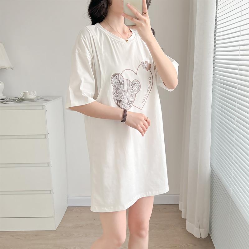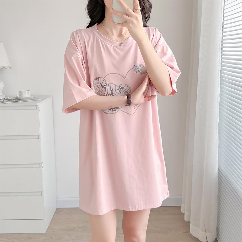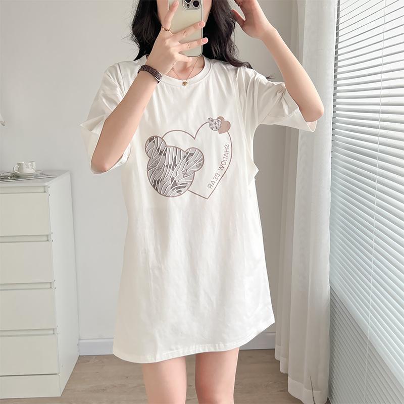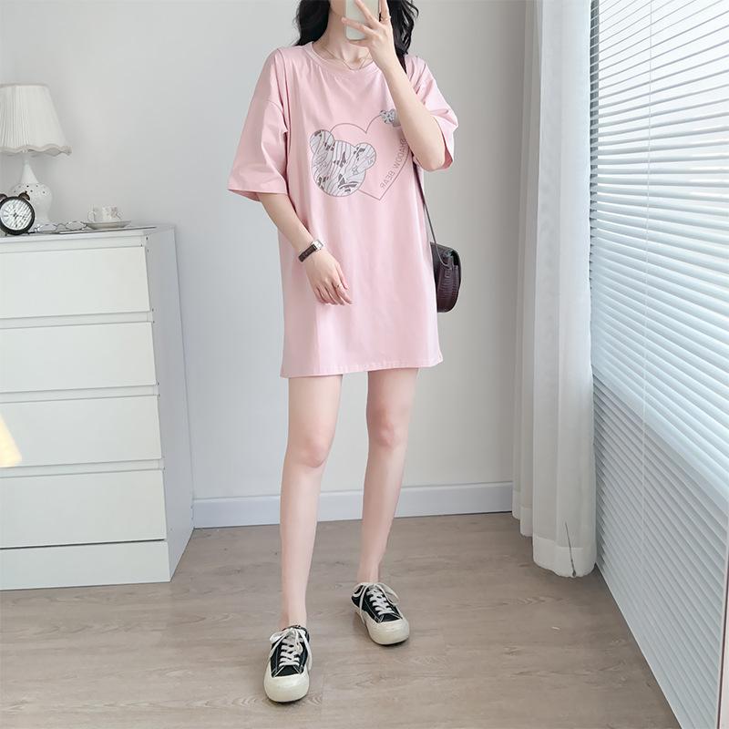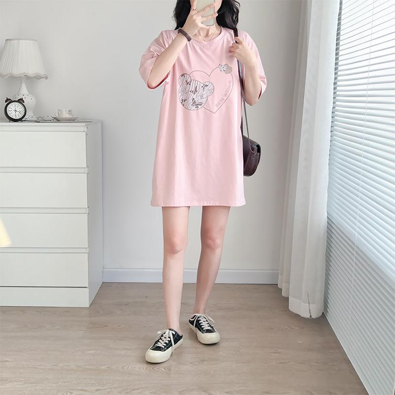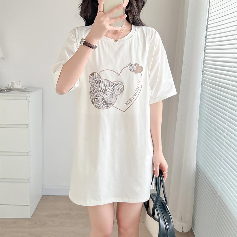 Camiseta de maternidad de verano de manga corta y largo medio, holgada, talla grande, de algodón, ropa de maternidad, ropa exterior posparto, ropa de lactancia