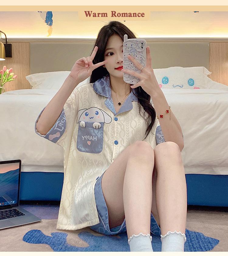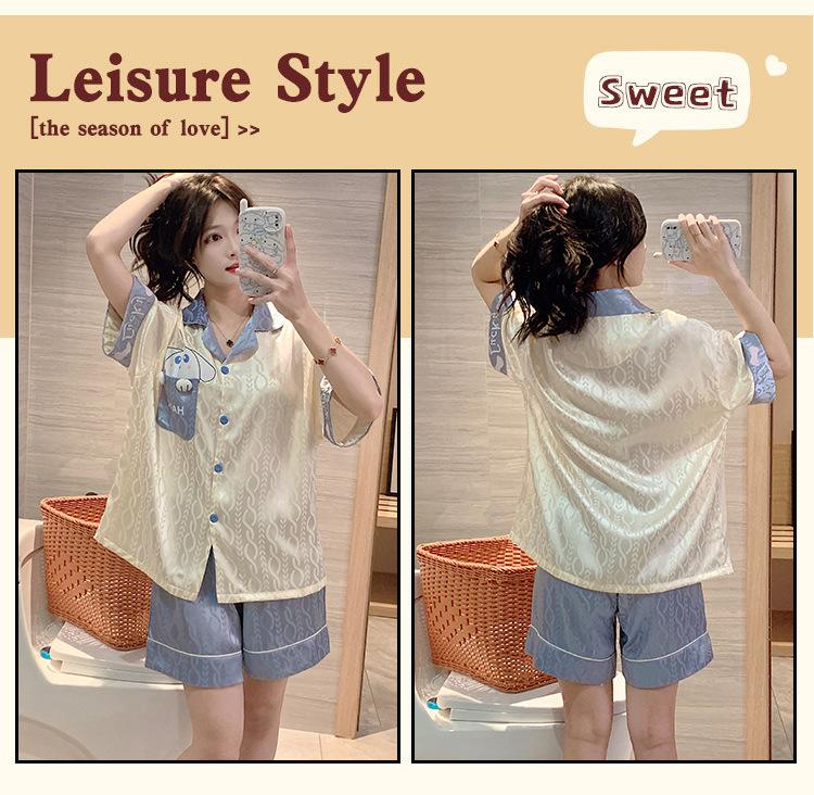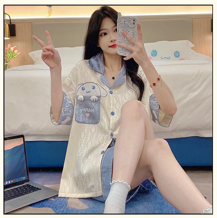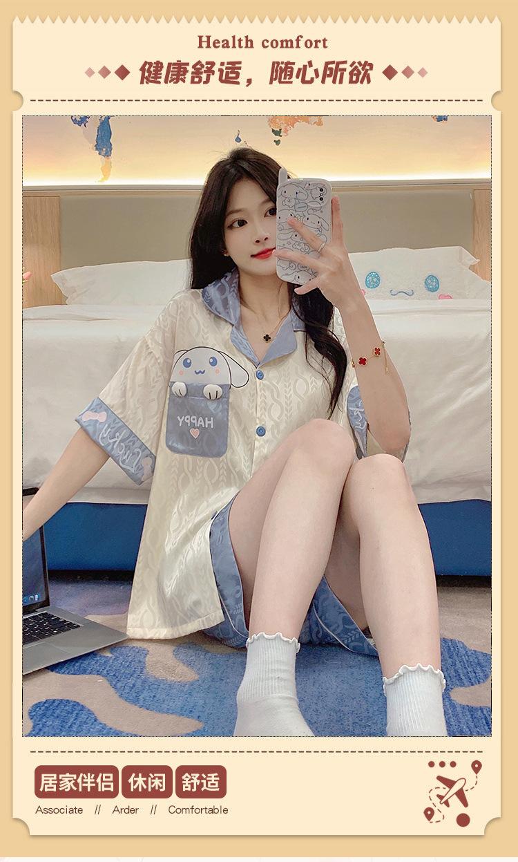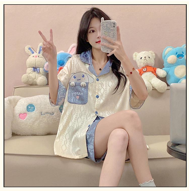 Pijama de verano de nuevo estilo para mujer, cárdigan fino de manga corta, estilo de dibujos animados, ropa informal para el hogar, traje para niña