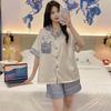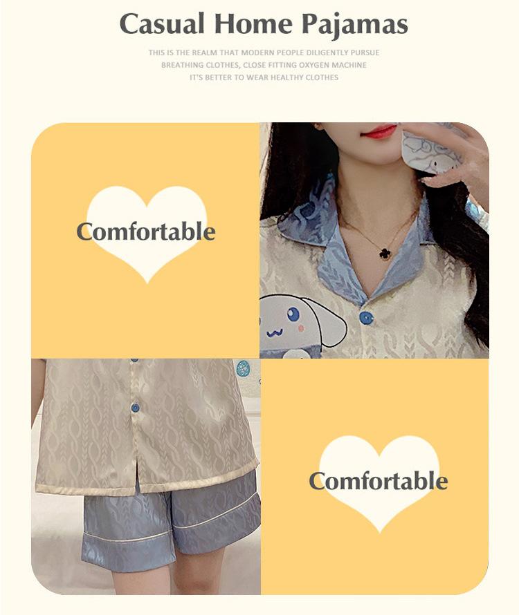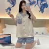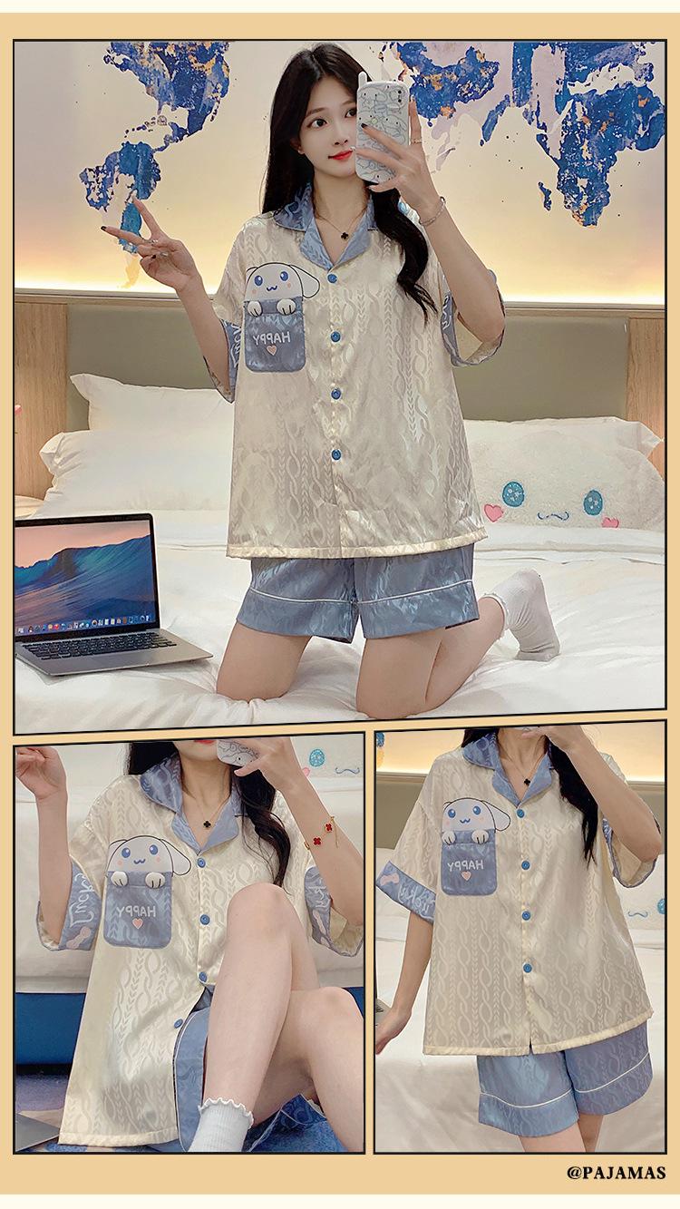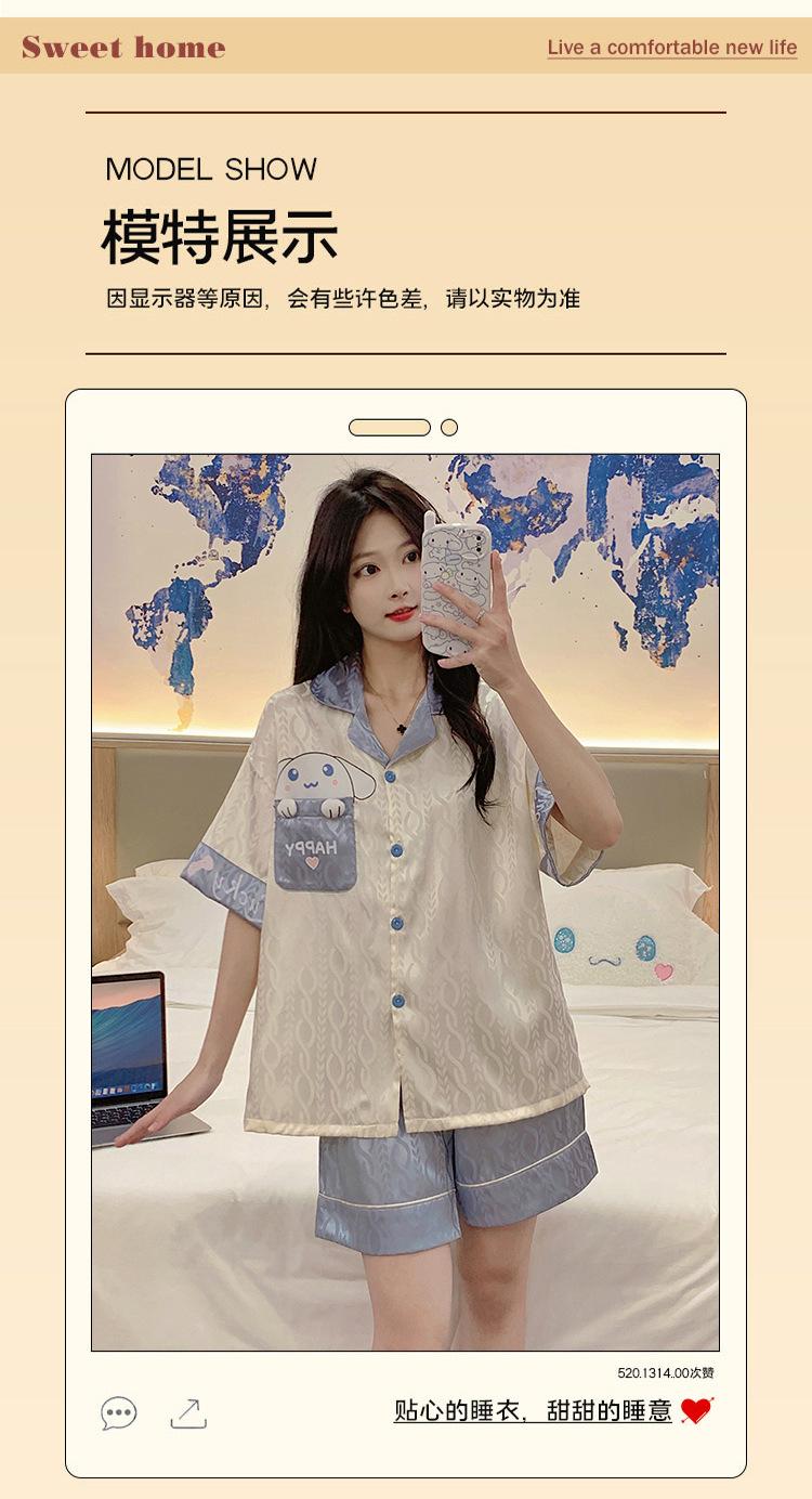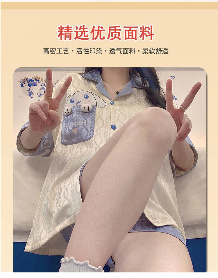 Pijama de verano de nuevo estilo para mujer, cárdigan fino de manga corta, estilo de dibujos animados, ropa informal para el hogar, traje para niña