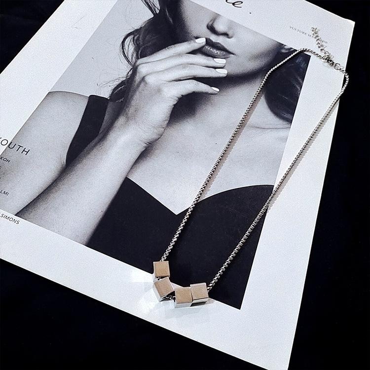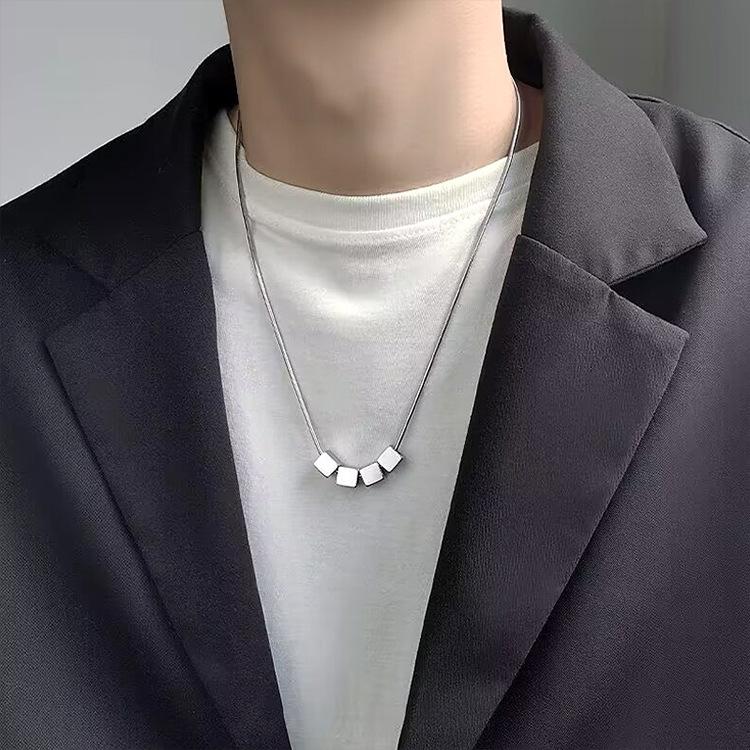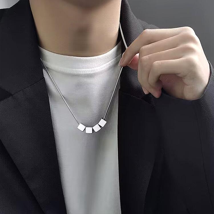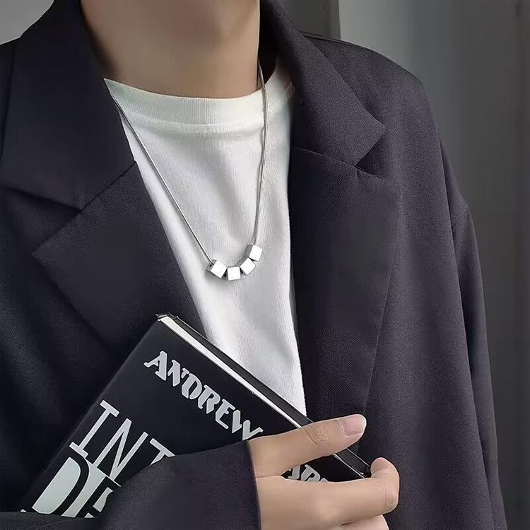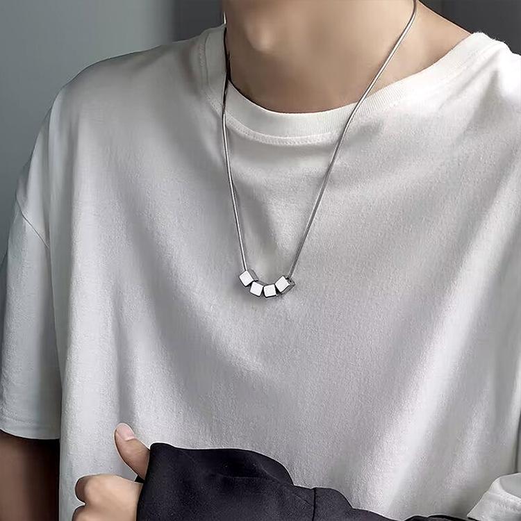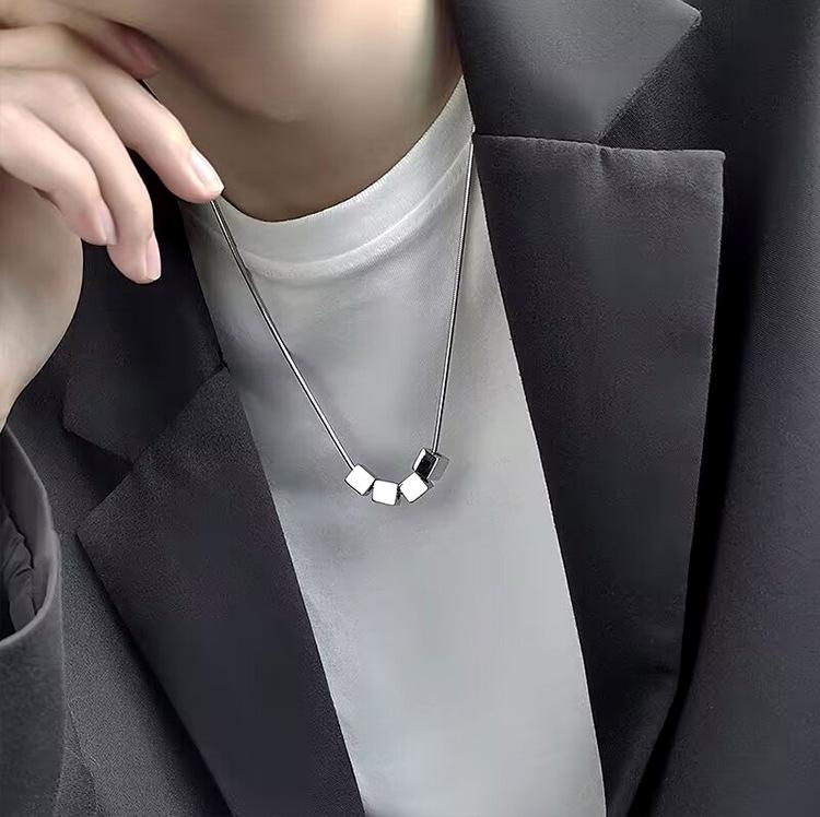 Collar para hombre versión coreana simple personalidad colgante de acero de titanio temperamento diseño nicho ins geométrico cubo de azúcar cadena clavícula colgante