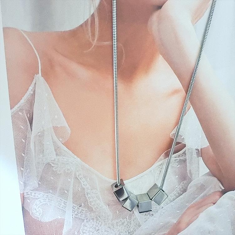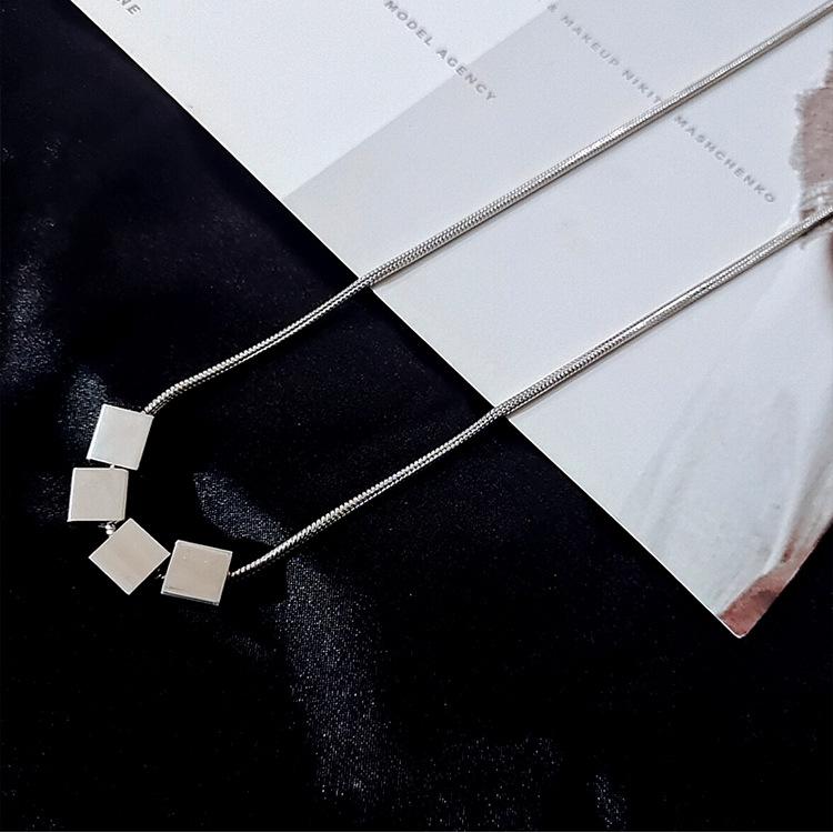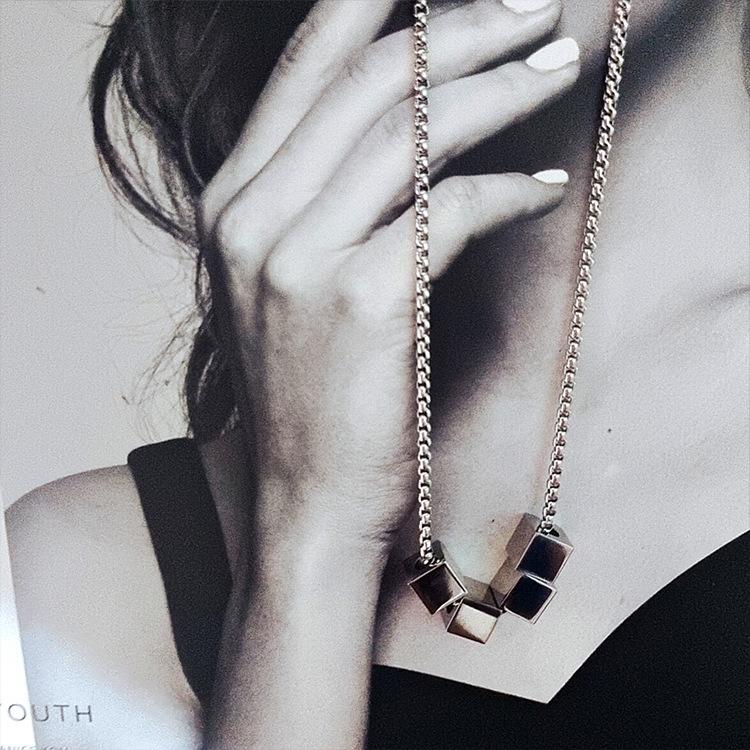 Collar colgante geométrico tridimensional de estilo cuadrado frío, joyería de acero de titanio, cadena para suéter para pareja, hombres y mujeres, cadena de hueso de serpiente, simple