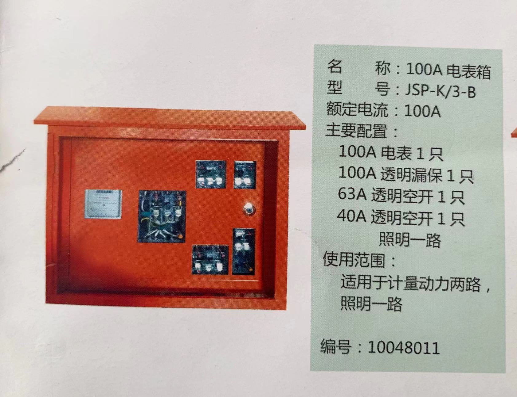 Un medidor eléctrico de 100A, un interruptor automático de 100A con protección contra fugas controlada, una protección contra fugas de 63A y una protección contra fugas de 40A.