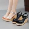 2024 Verano Nuevas Sandalias de Cuña de Tacón Alto para Mujer Plataforma Impermeable Plataforma Suela Gruesa Más Fáciles de Combinar Talla Grande 4143 Sandalias Pedrería para Mujer