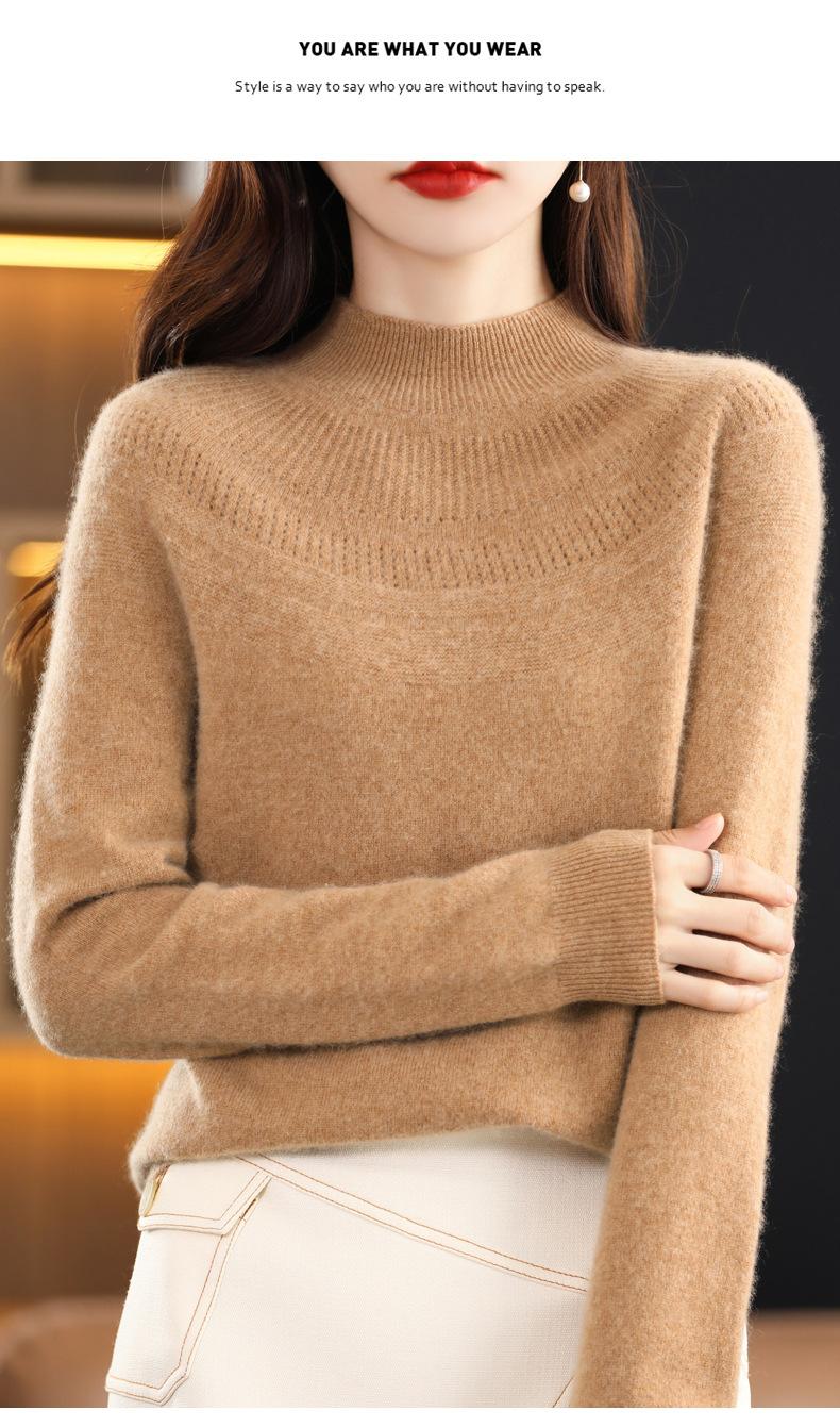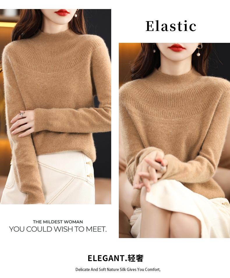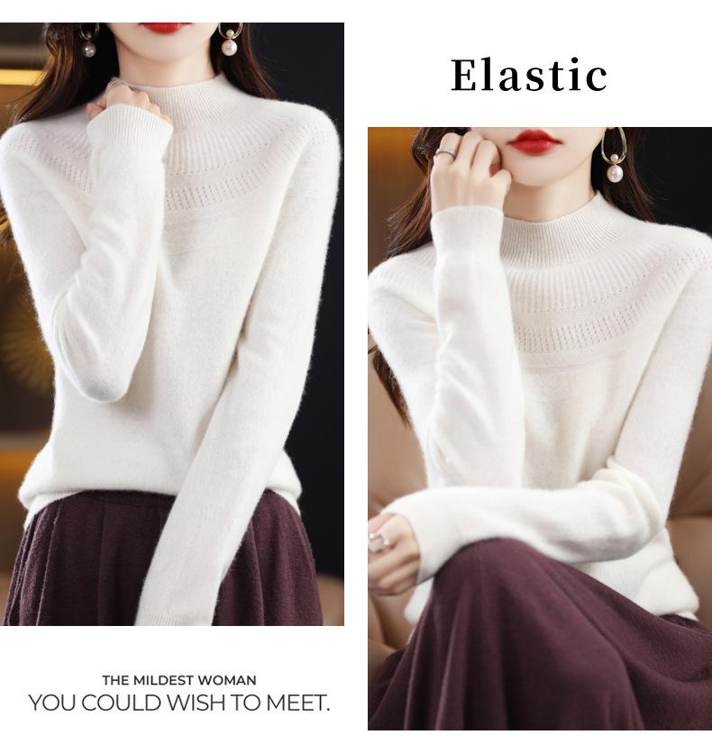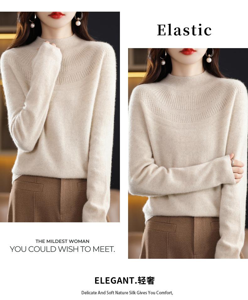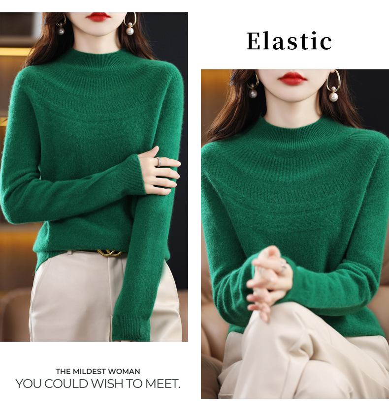 Suéter sin costuras de primera línea para mujer, 100% lana pura, otoño e invierno 2022, jersey holgado de cuello alto con parte inferior
